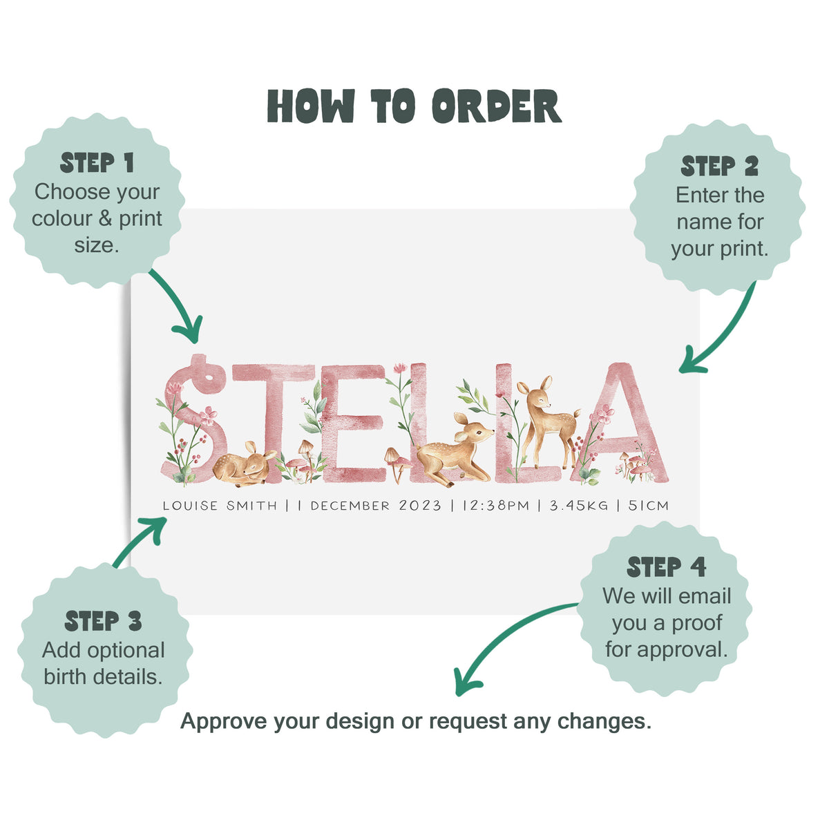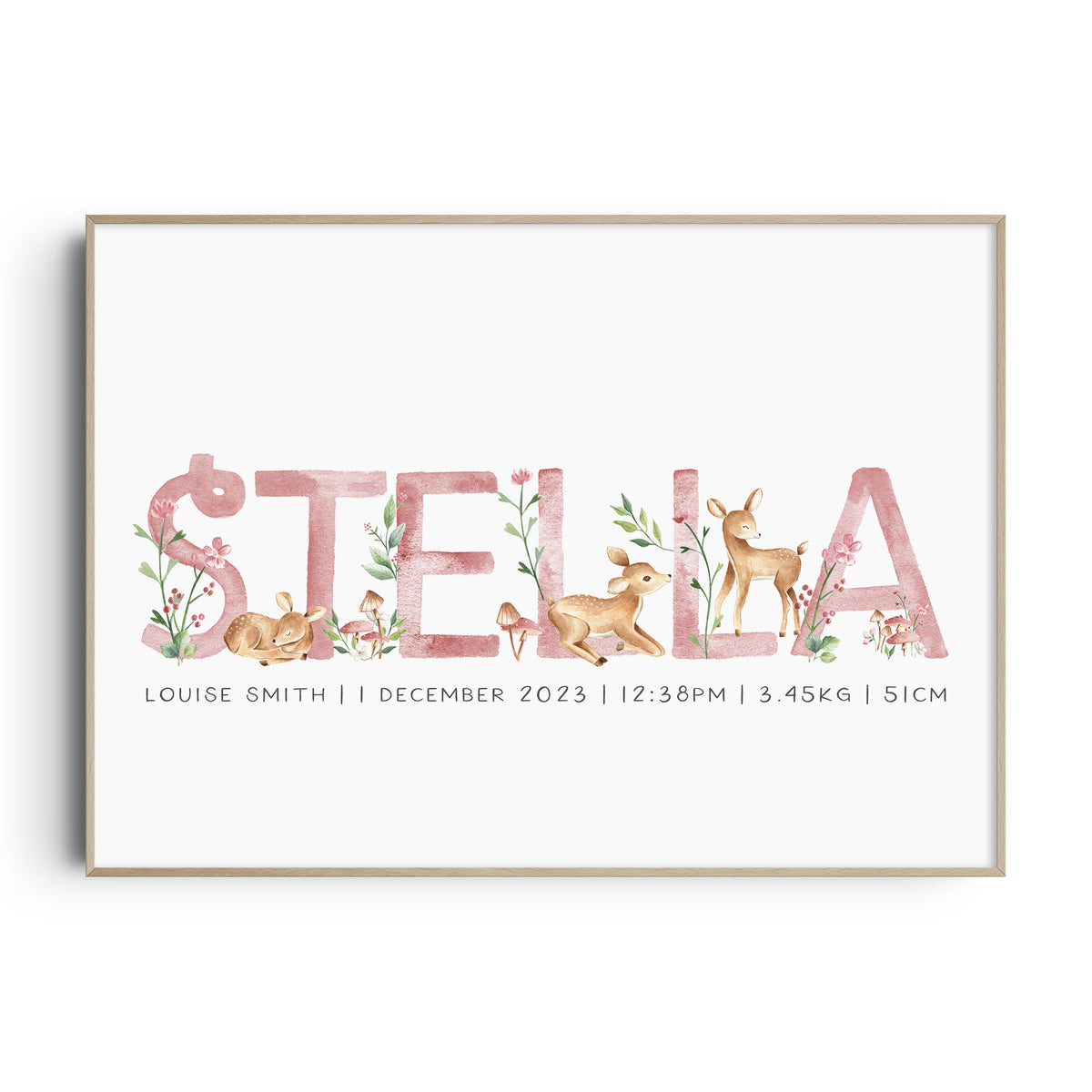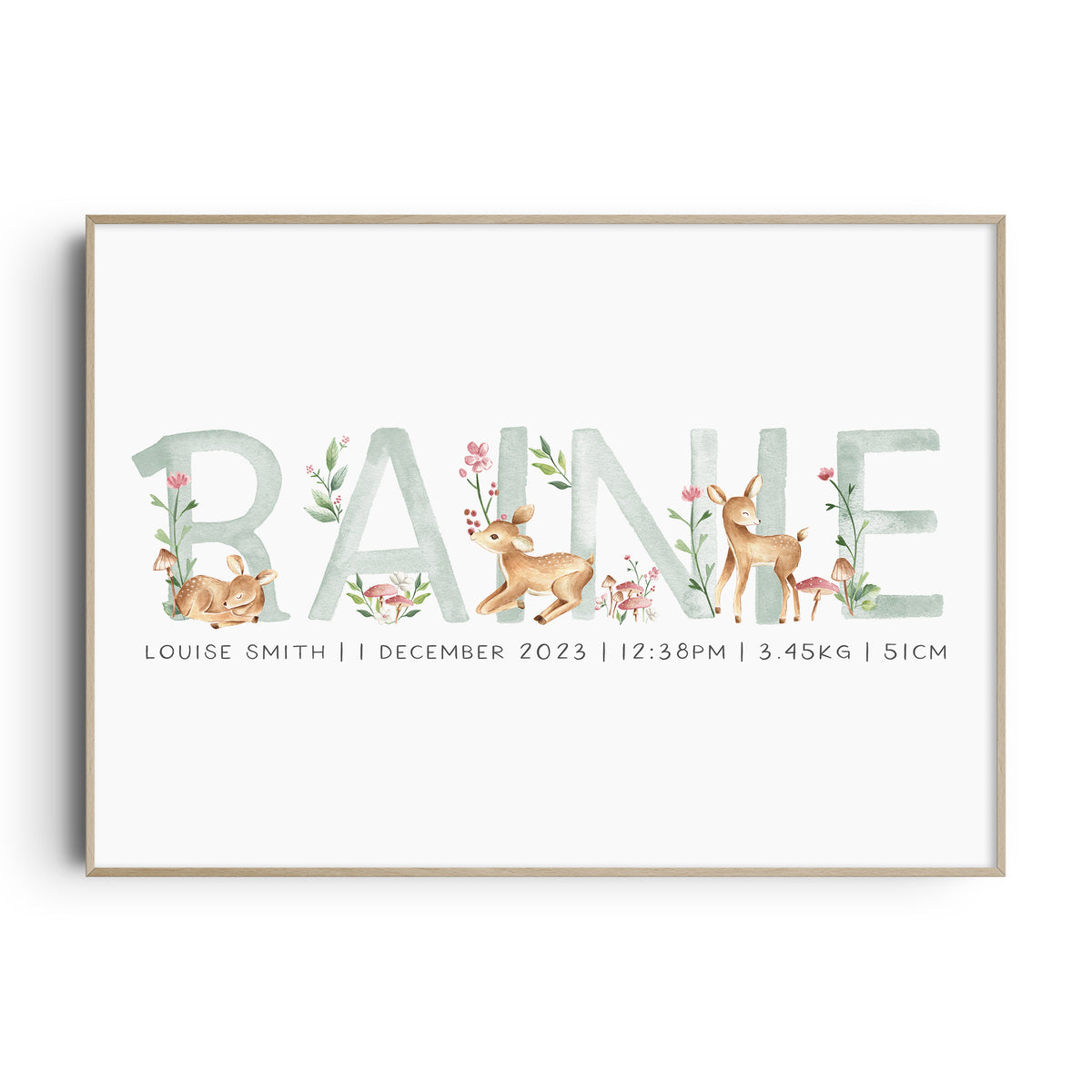 Baby Deers Name & Birth Print