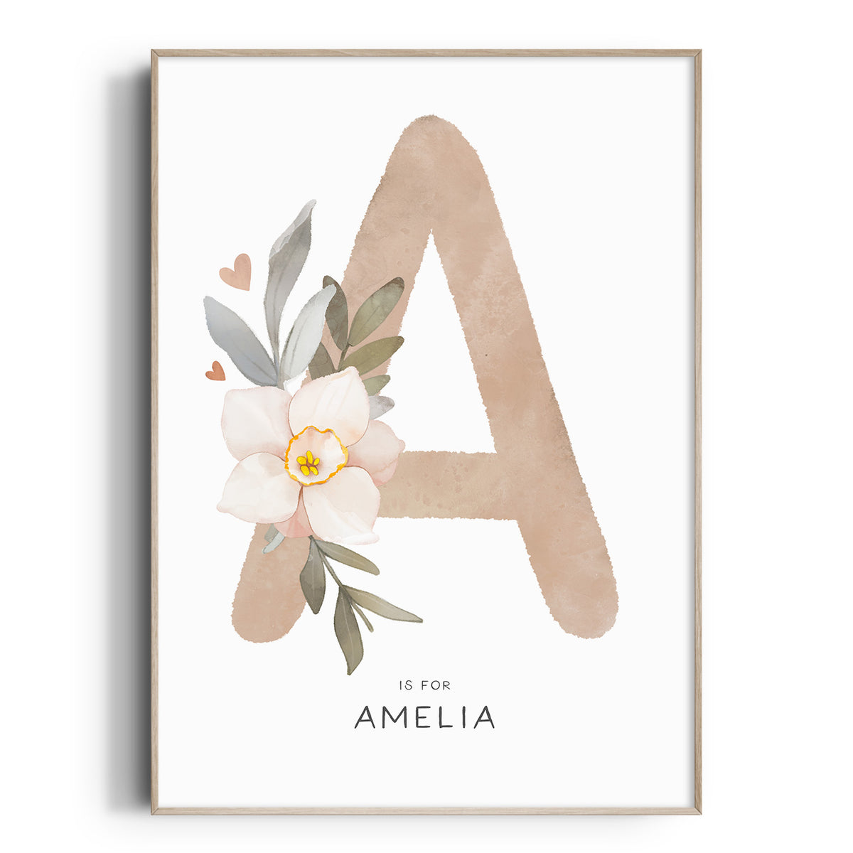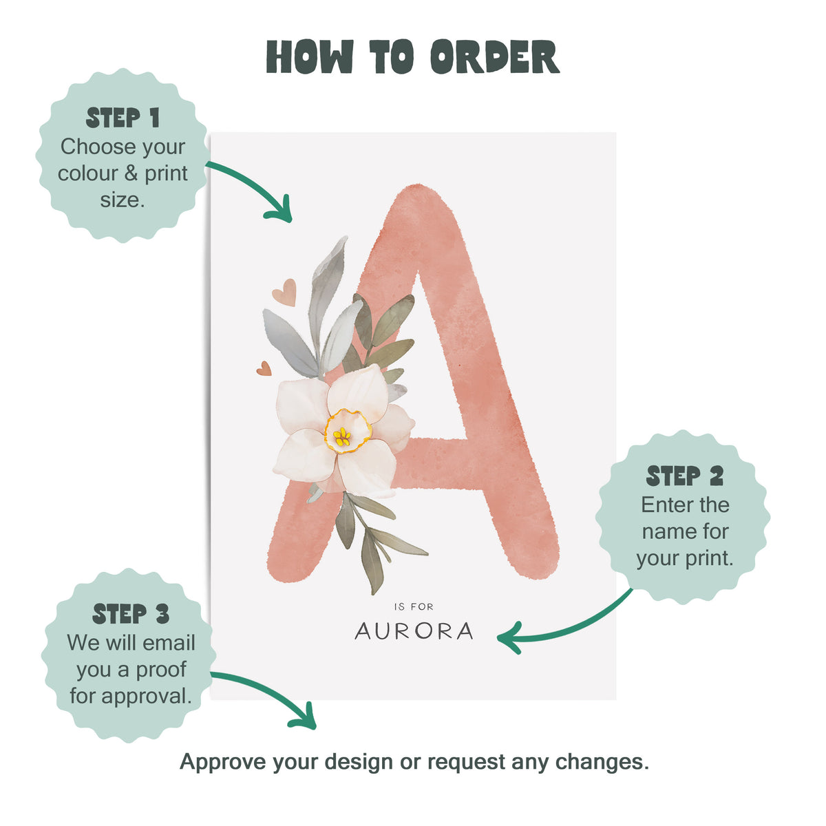 Unit price perThis boho floral initial & name print is available in your choice of colour with the option to simply include a letter or add name details, it makes a perfect new baby gift or simply add the finishing touches to your own child's nursery space.