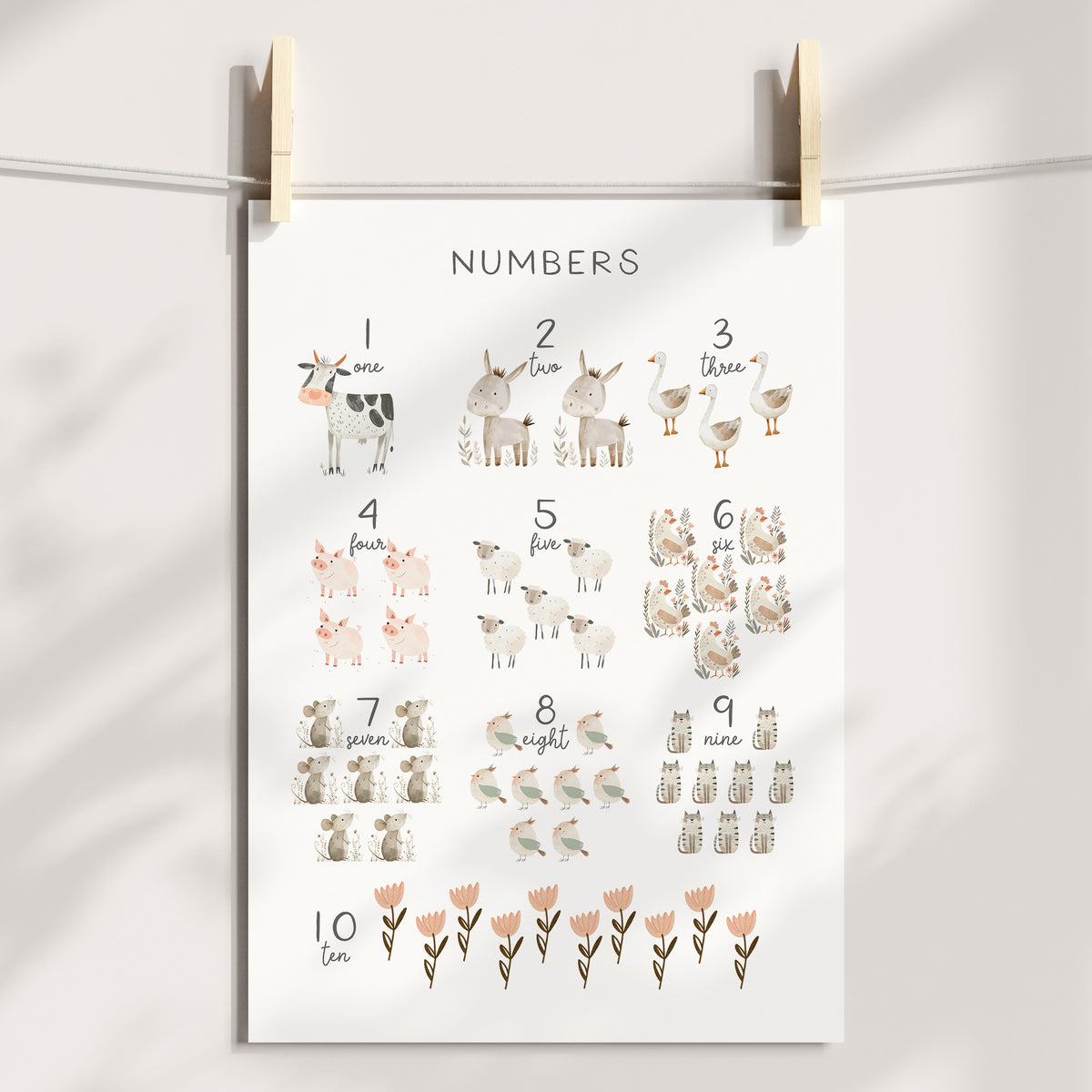 Unit price perThis Farm Numbers Print Nursery Wall Art is the ideal way to brighten up your little one's bedroom, playroom or nursery! The playful design features a delightful array of farm animals and objects to help your child learn their numbers in a fun and friendly way.
