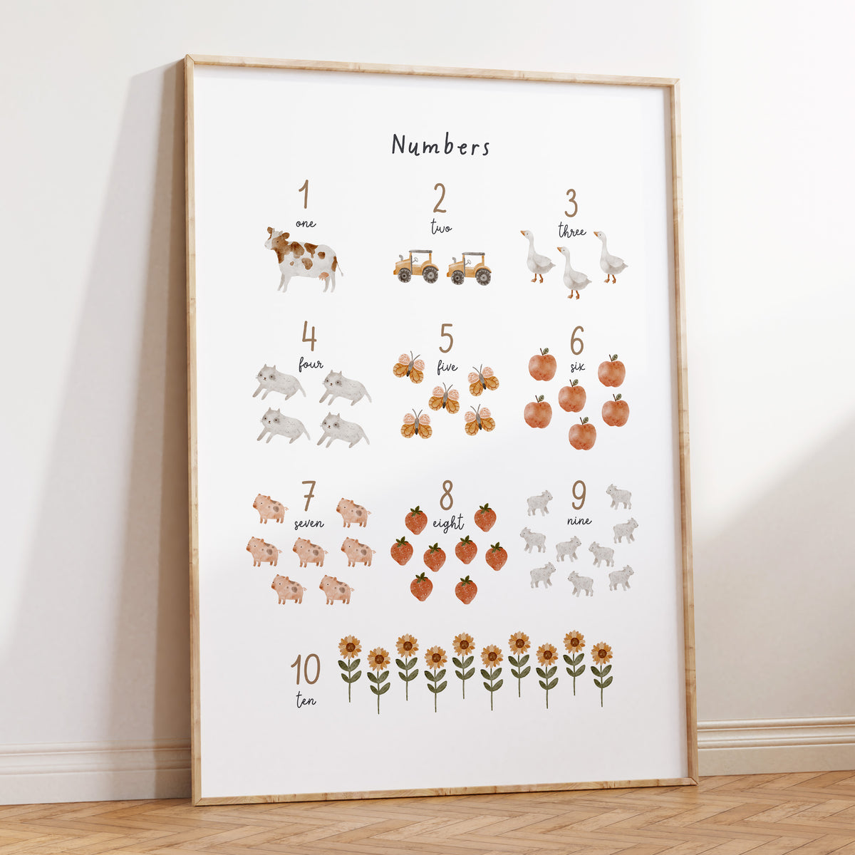 Unit price perThis Farm Numbers Print Nursery Wall Art is the ideal way to brighten up your little one's bedroom, playroom or nursery! The playful design features a delightful array of farm animals and objects to help your child learn their numbers in a fun and friendly way.