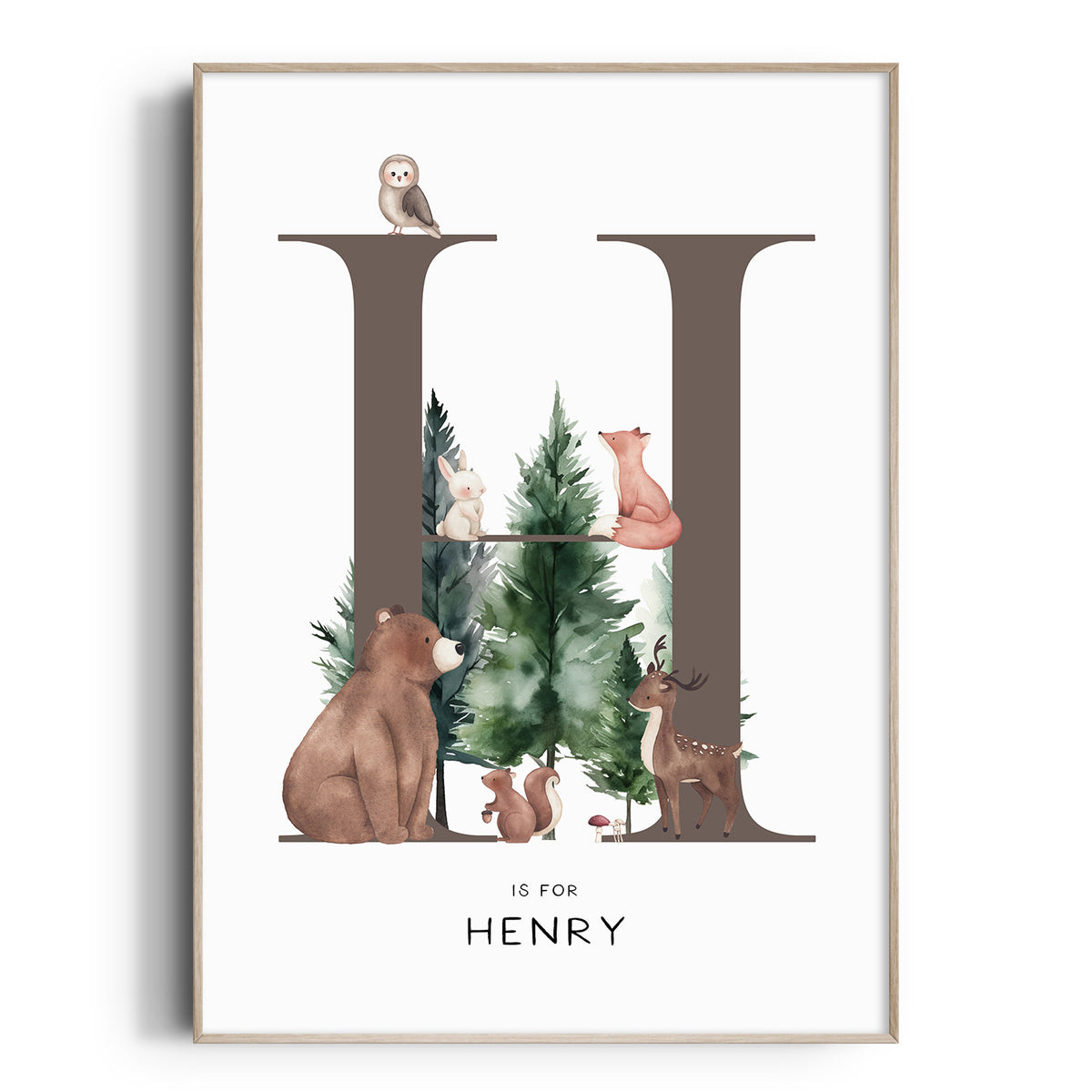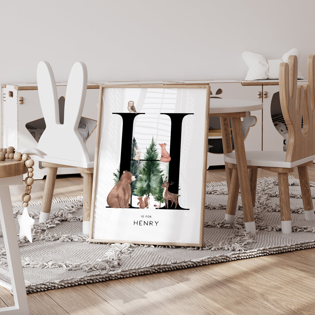 Unit price perPerfect for the woodland or forest animal themed nursery, this personalised baby letter & name print is available with your choice of colour, it makes a perfect new baby gift or add the finishing touches to your own little boy's room.