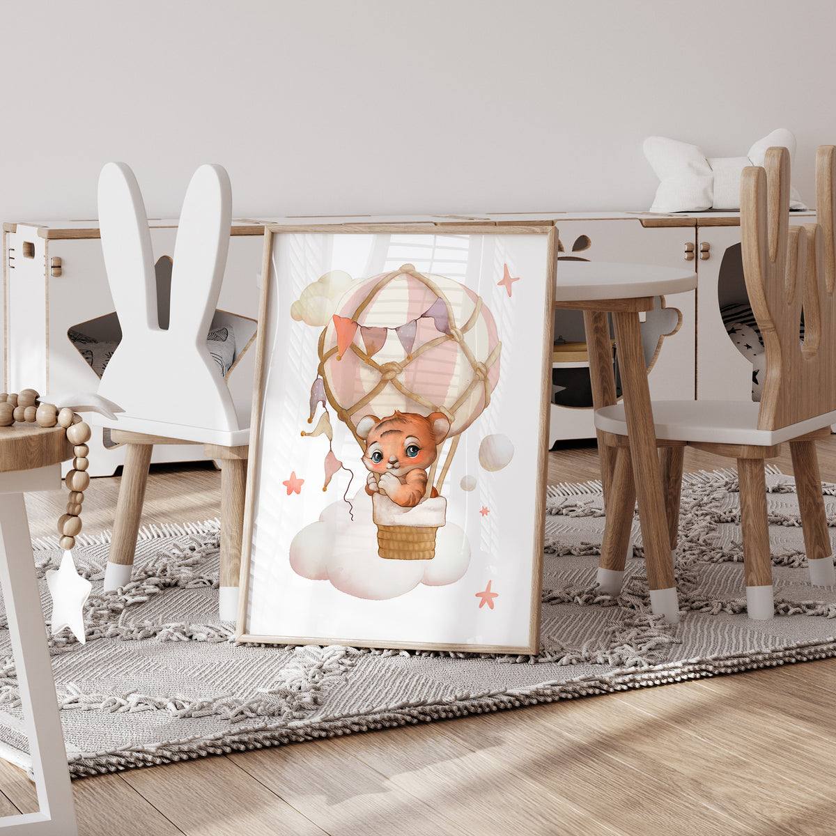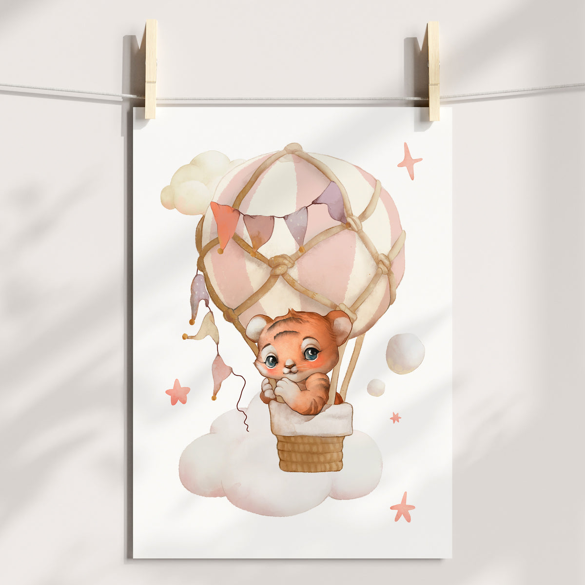 Unit price perTransform any nursery into a dreamy adventure with our tiger Hot Air Balloon Nursery Print, available in two colorways. Featuring a charming illustration of a tiger riding a hot air balloon, this gender-neutral nursery print is the perfect addition to any little one's bedroom.
