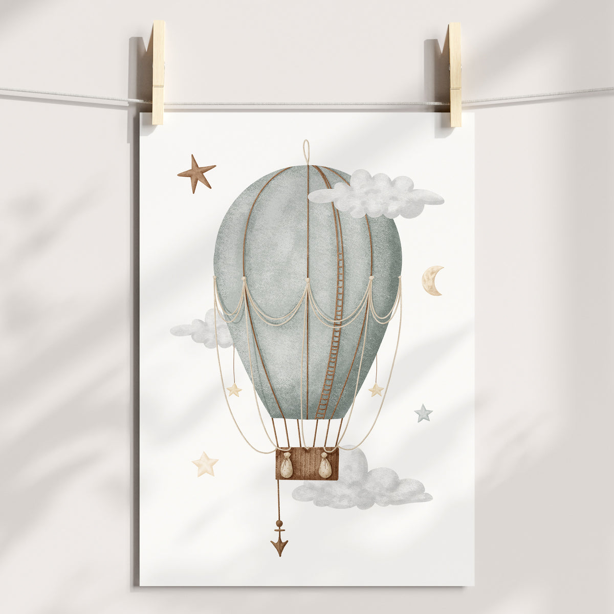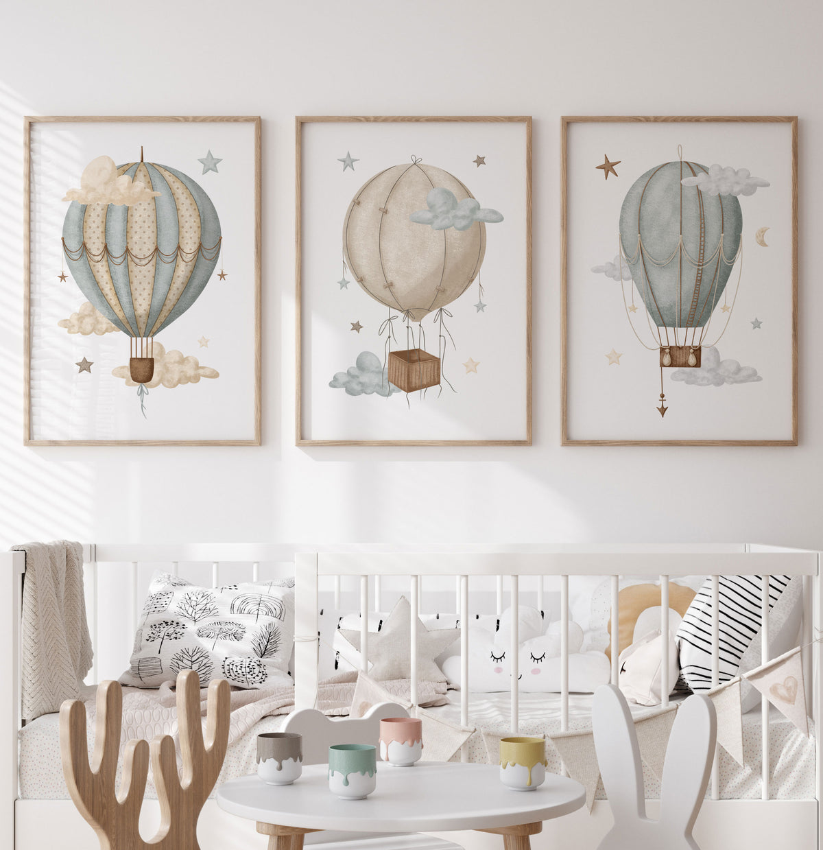 Transform any nursery into a dreamy adventure with this set of 3 hot air balloon prints. Featuring a charming illustration of a hot air balloon, this gender-neutral nursery print is the perfect addition to any little one's bedroom.