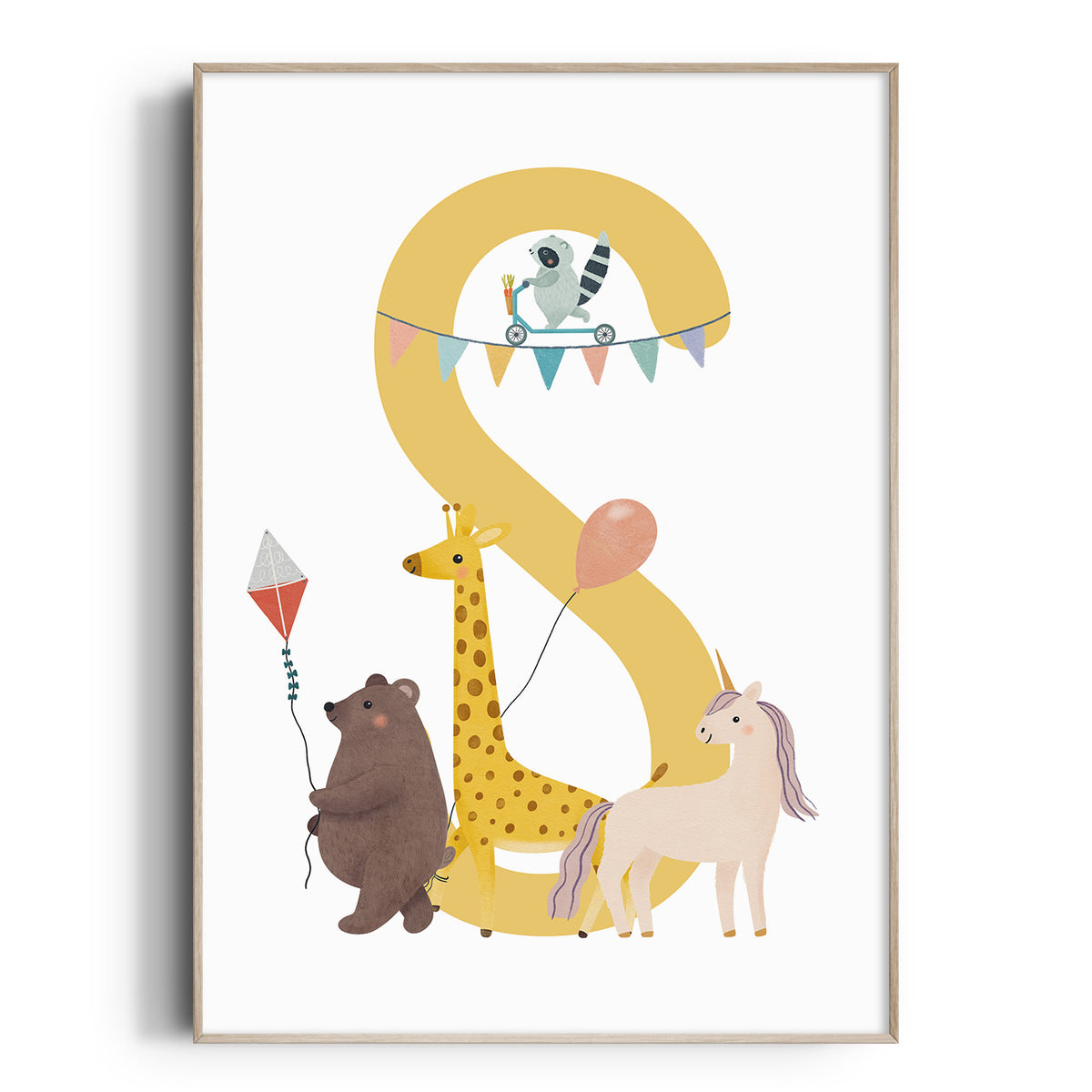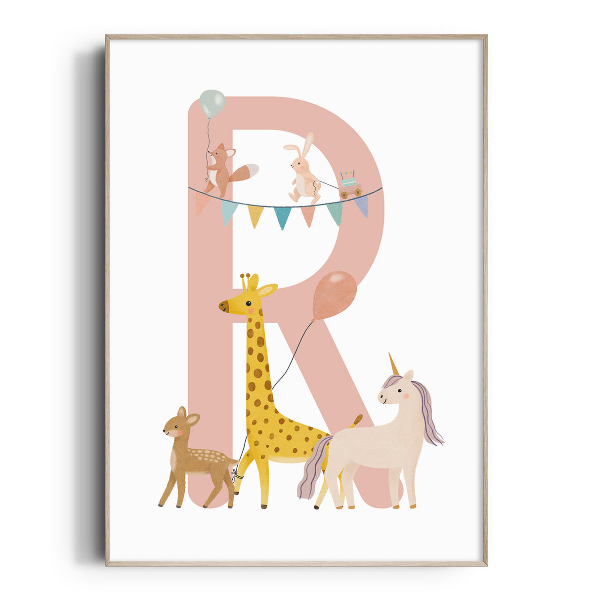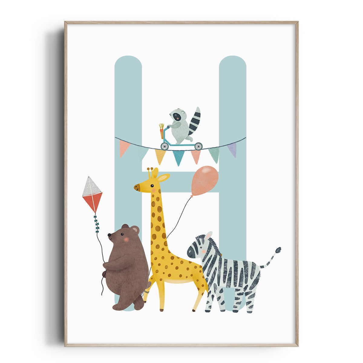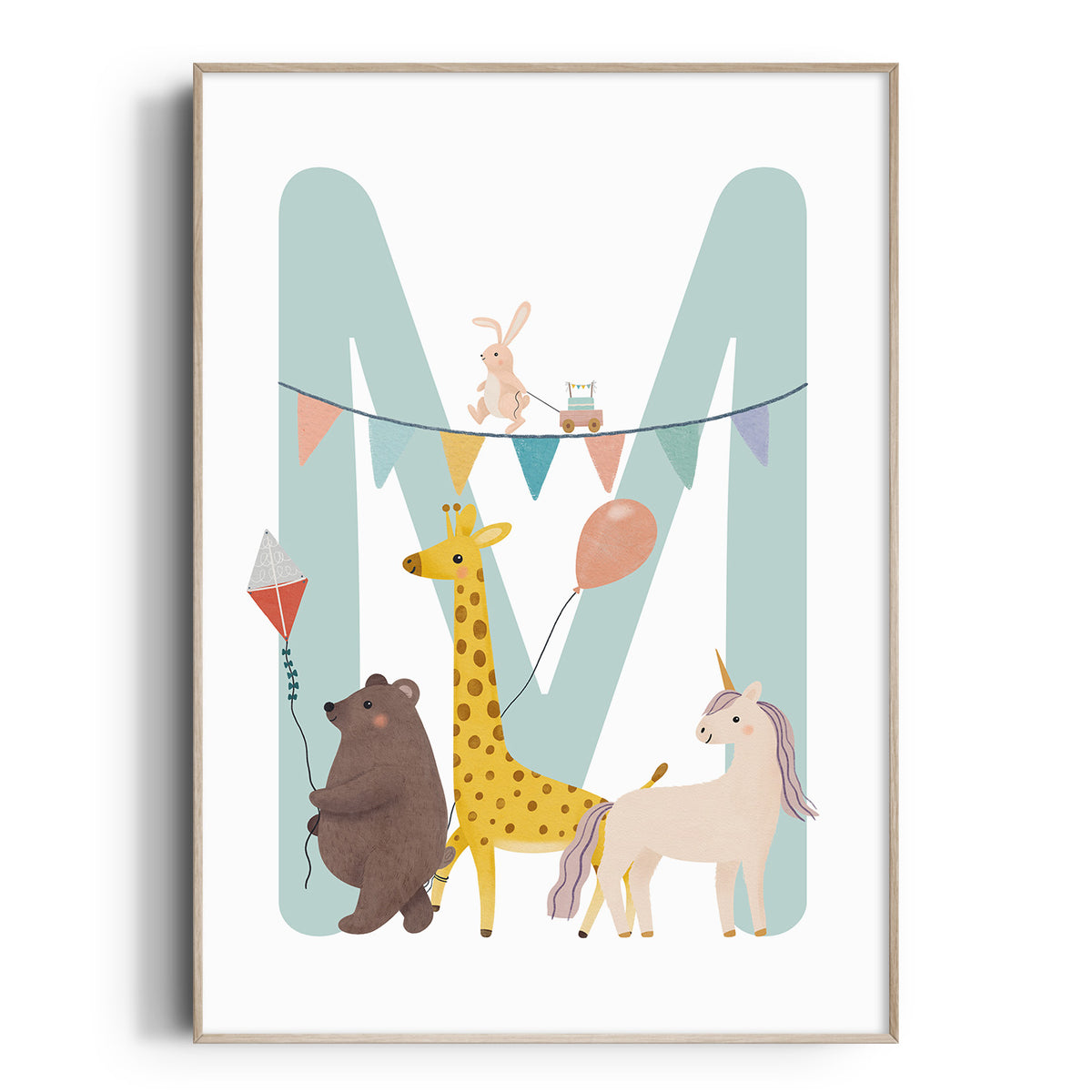 Unit price perTransform your little one's nursery into an enchanting animal adventure with this playful initial wall art print. Available in 6 colours and with the opportunity to personalise it with your own choice of animals this whimsy print is a perfect addition to any nursery.