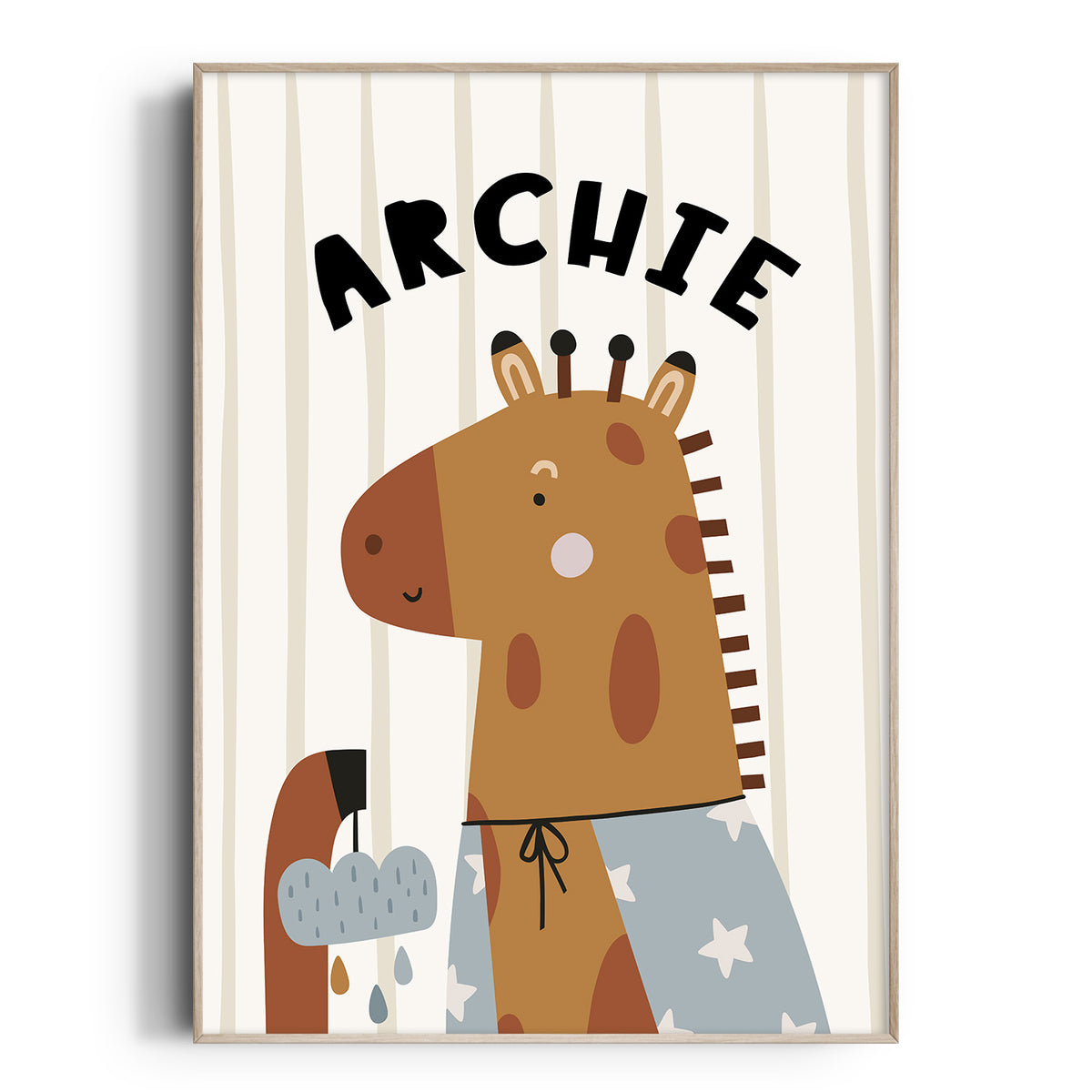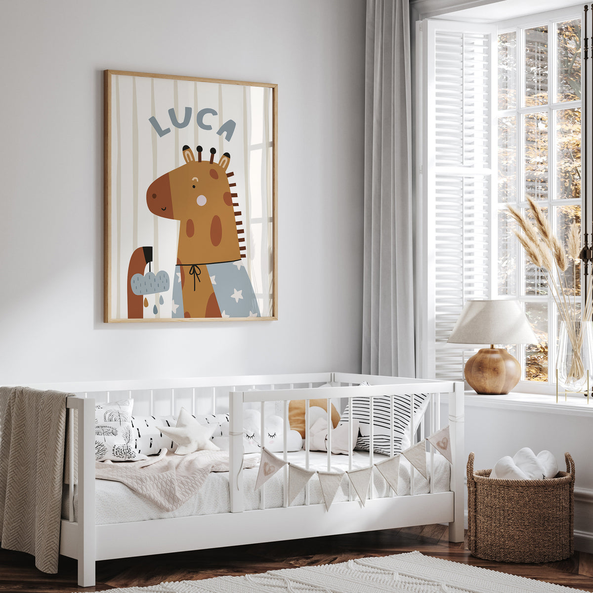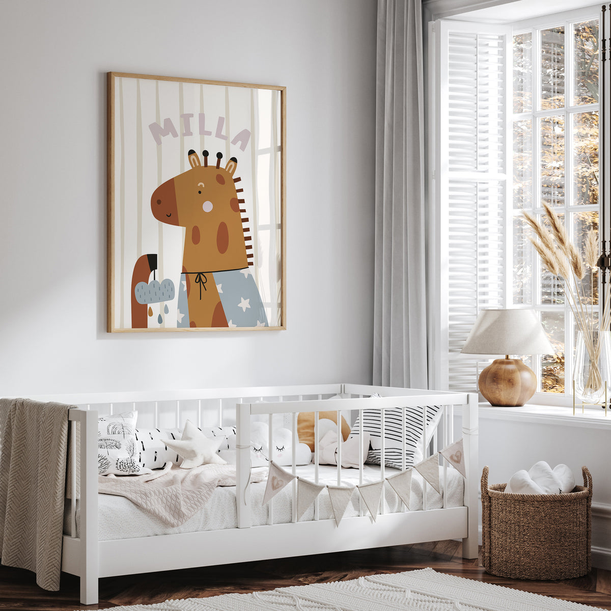 Perfect for the safari, jungle or animal themed nursery, this gender-neutral personalised giraffe baby name print makes a perfect new baby gift or add the finishing touches to your own little one's room.