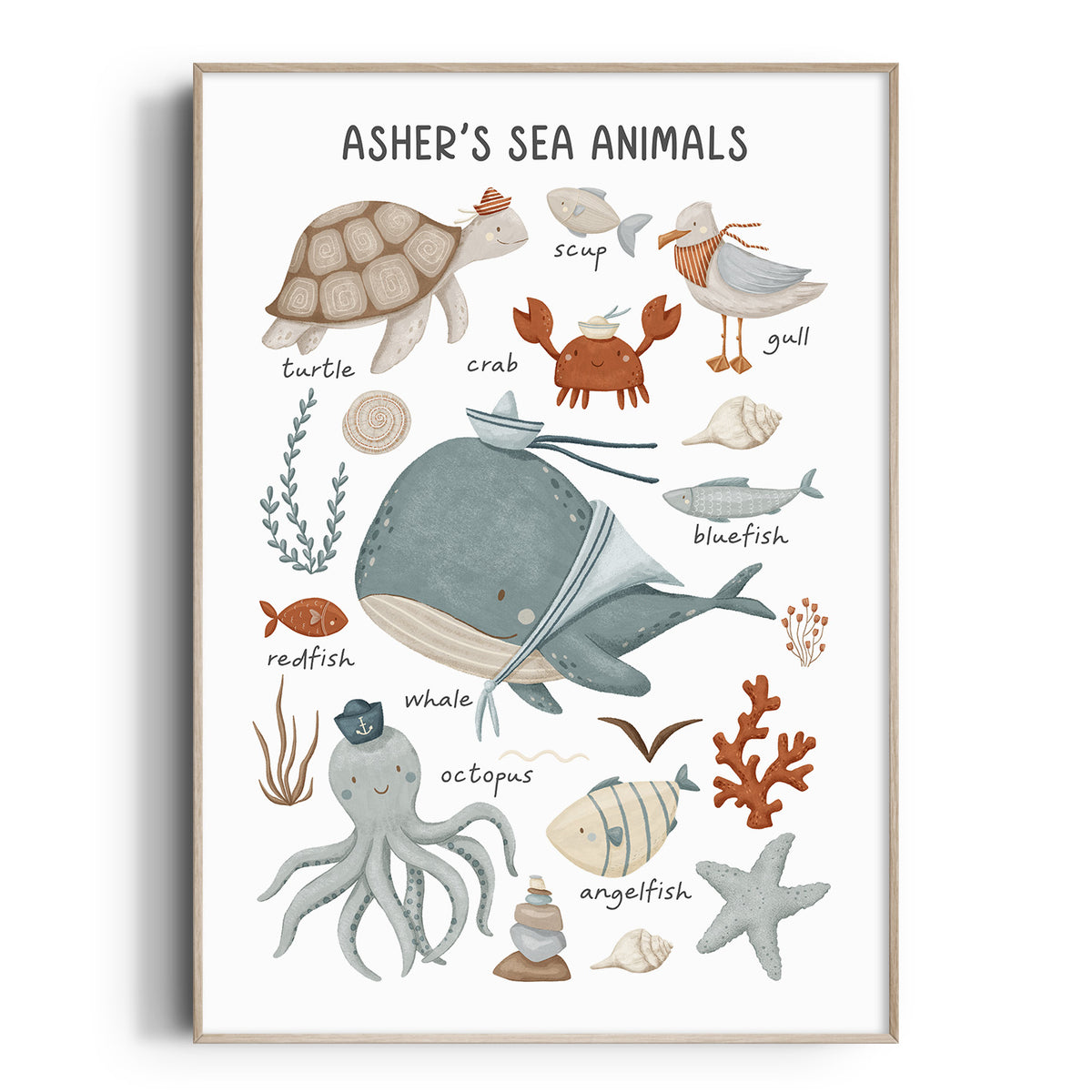 Unit price per"Add a splash of whimsy to your child's nursery with our personalised Sea Animals Print. Featuring charming sea creatures, this nursery wall art will bring a touch of the ocean to any room. Playful and unique, this print is the perfect addition to any kids' space.