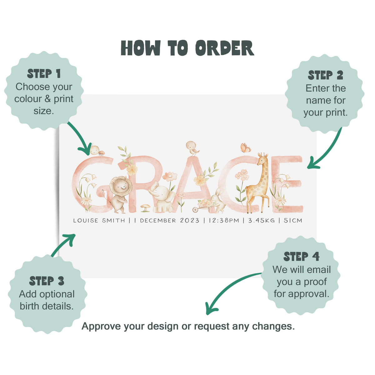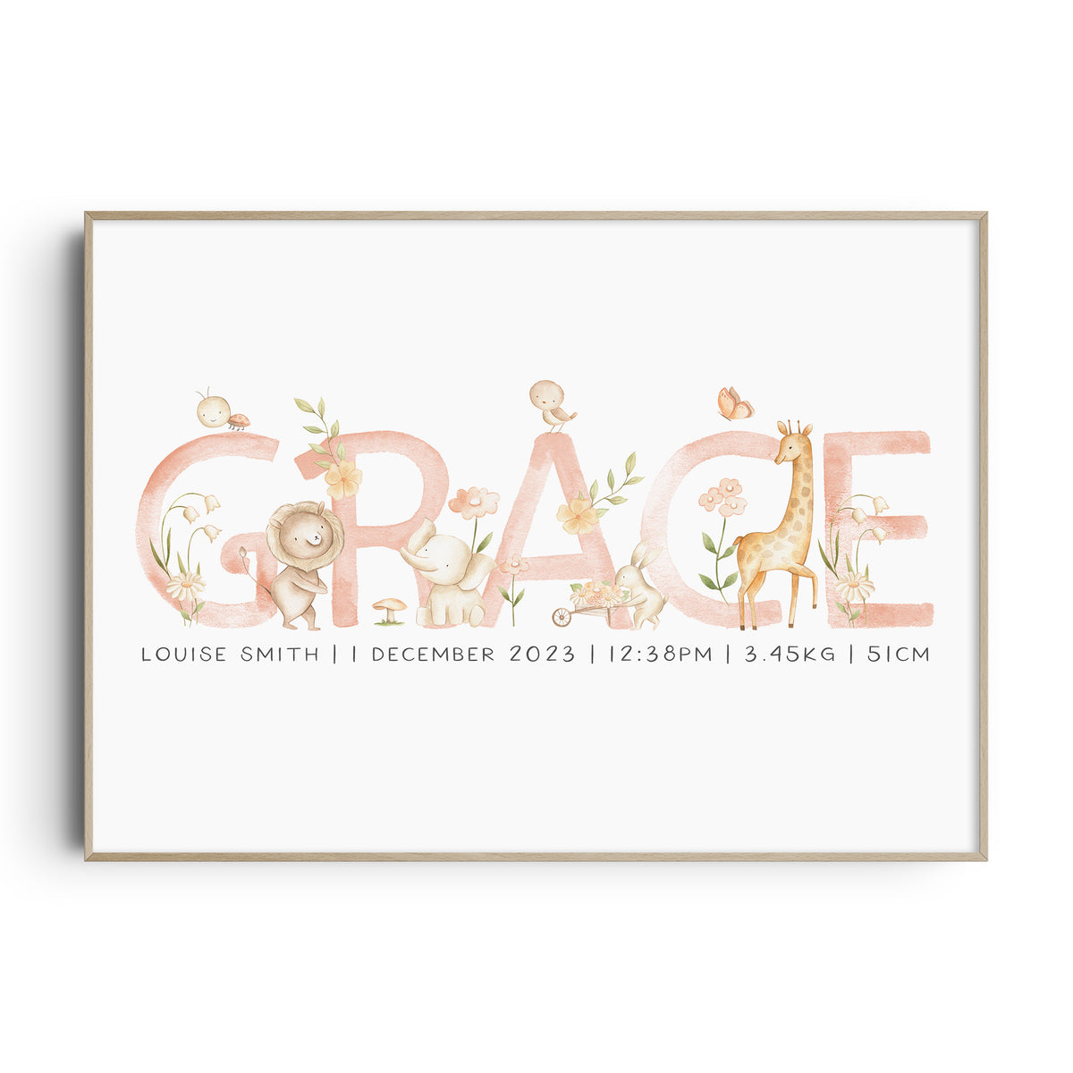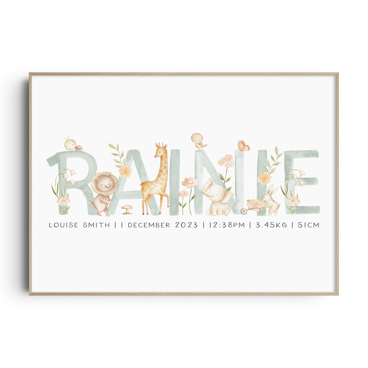 Spring Animals Name & Birth Print