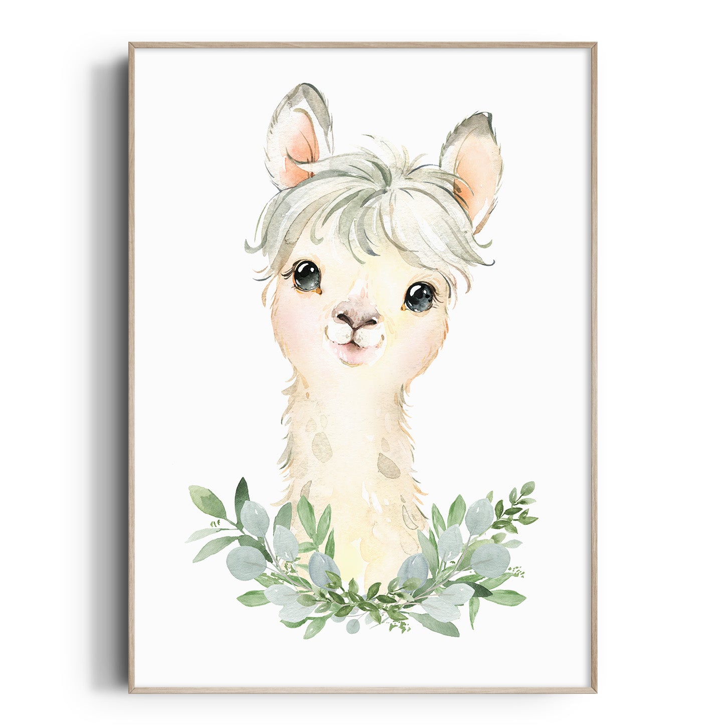 This watercolour baby alpaca wall art, would make a lovely addition to a nursery, child's bedroom, or playroom. Pair it with one of our many other baby safari animal prints or use as a stand alone statement.