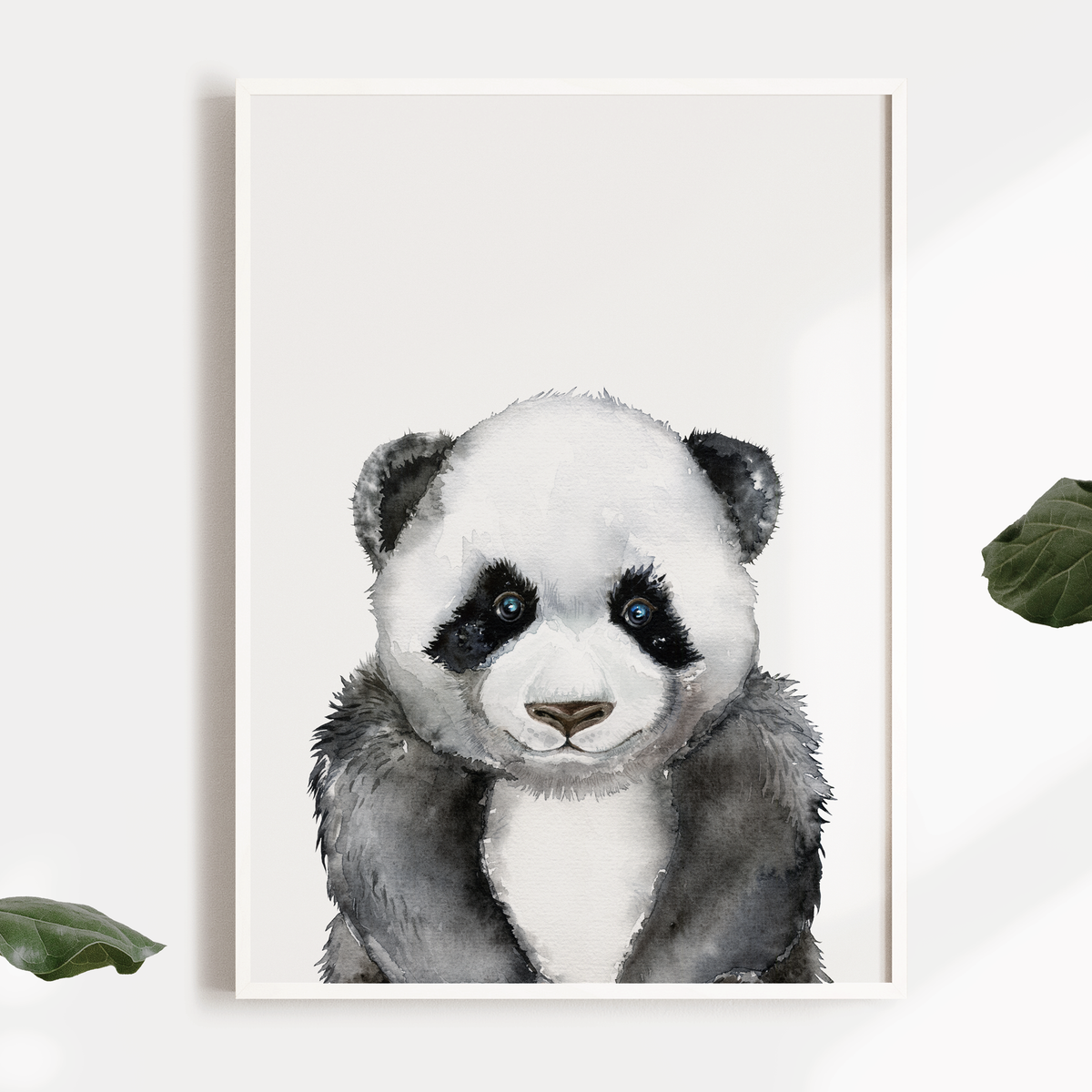 This set of three gender neutral safari animal prints includes a baby panda, giraffe and elephant. A perfect way to add the finishing touches to your baby's nursery, child's bedroom or playroom decor.