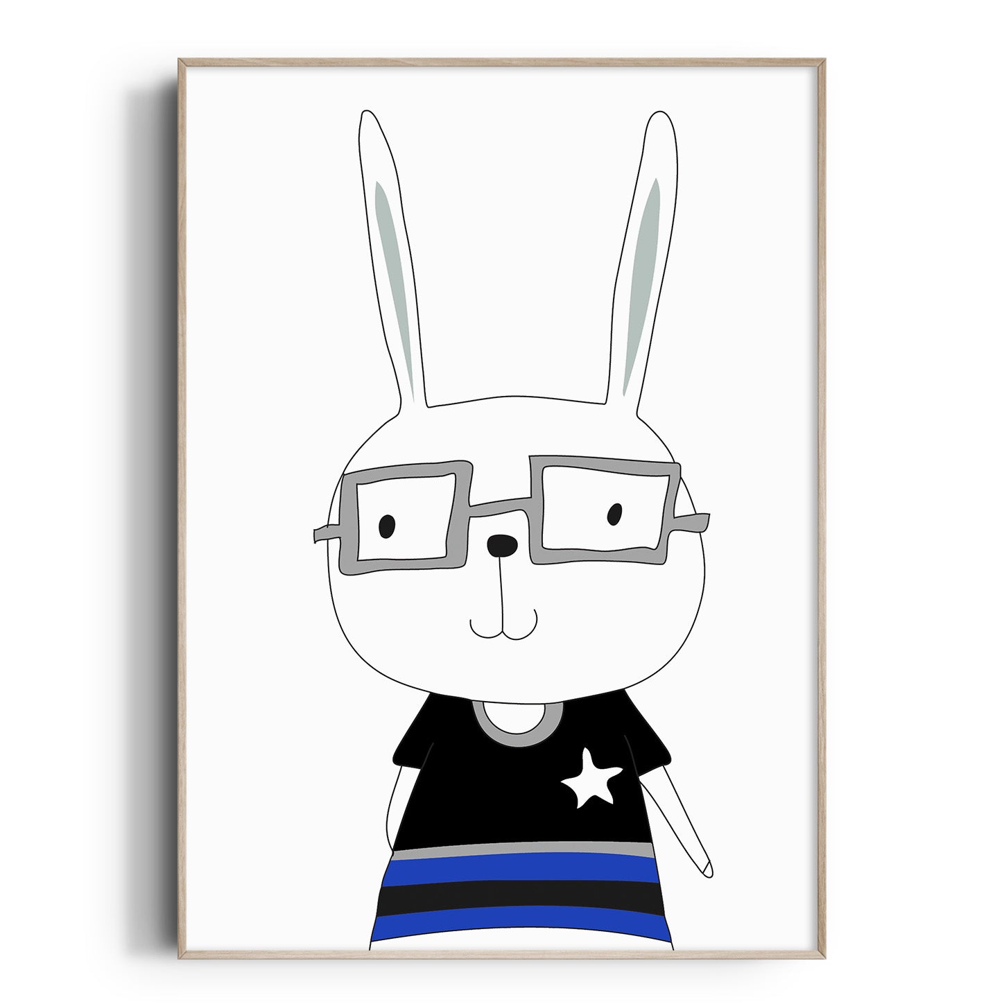 Unit price perOur hipster bunny wall art print can be used as a stand alone statement piece in your child's nursery or bedroom decor, or can be mixed and matched with other co-ordinating posters.