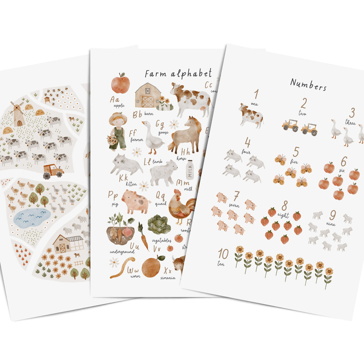 ThisĀ On The Farm Wall Art set is the ideal way to brighten up your little one's bedroom, playroom or nursery! The playful design features an alphabet, numbers and on the farm print.