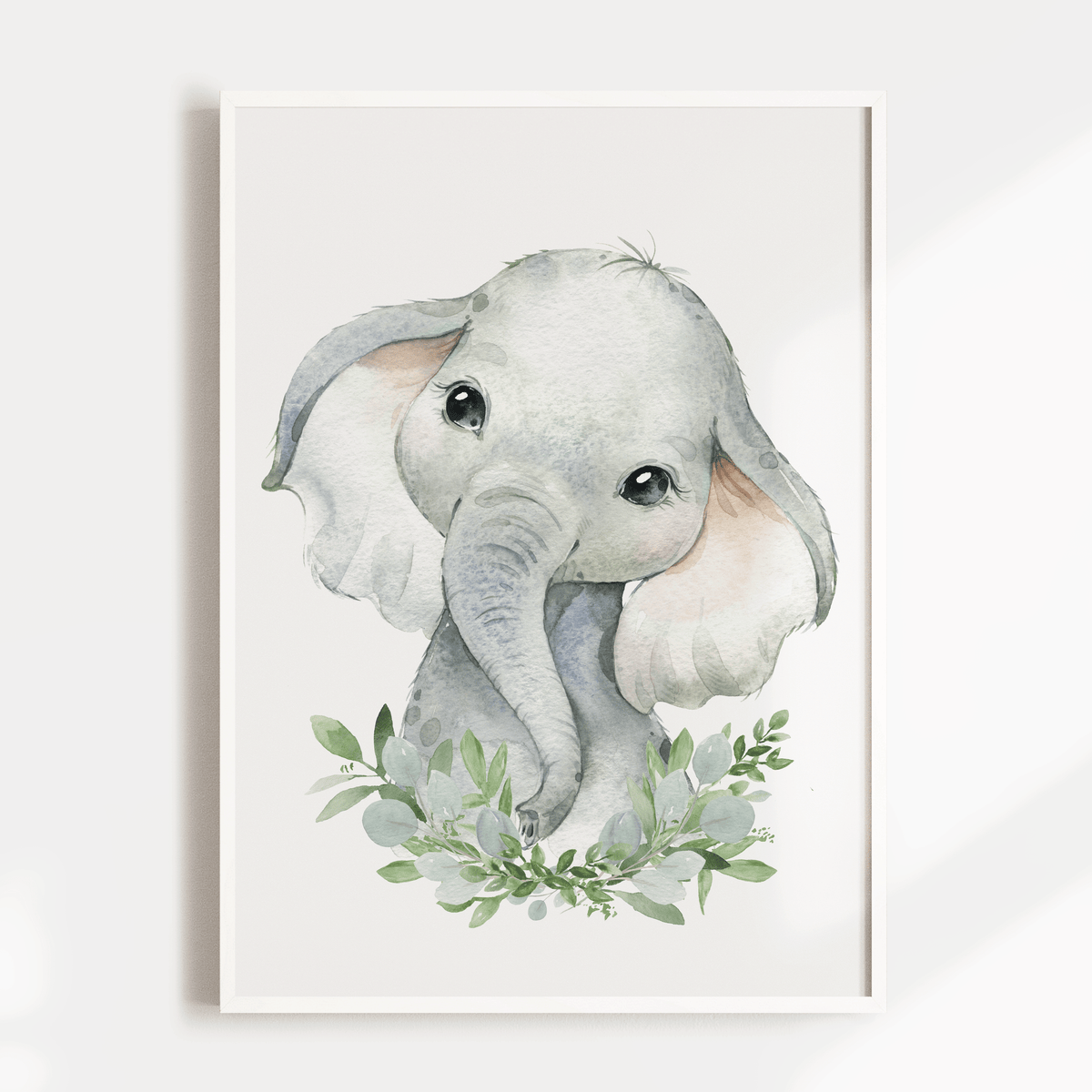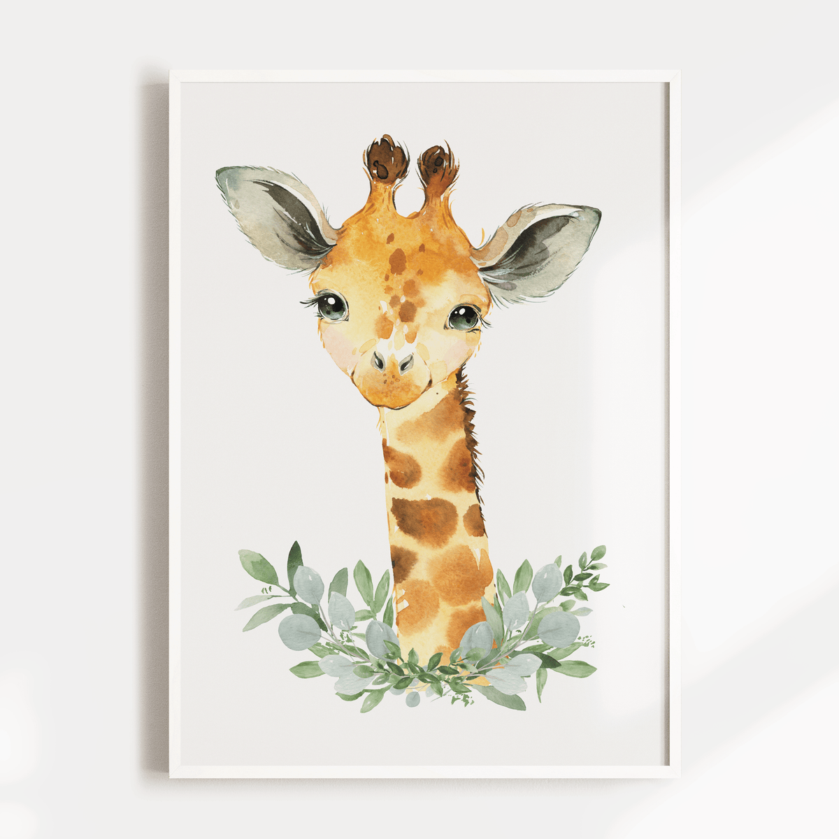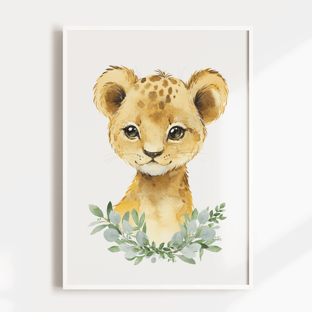 A woodland, safari nursery or bedroom wall art print set includes an elephant, giraffe and lion print.