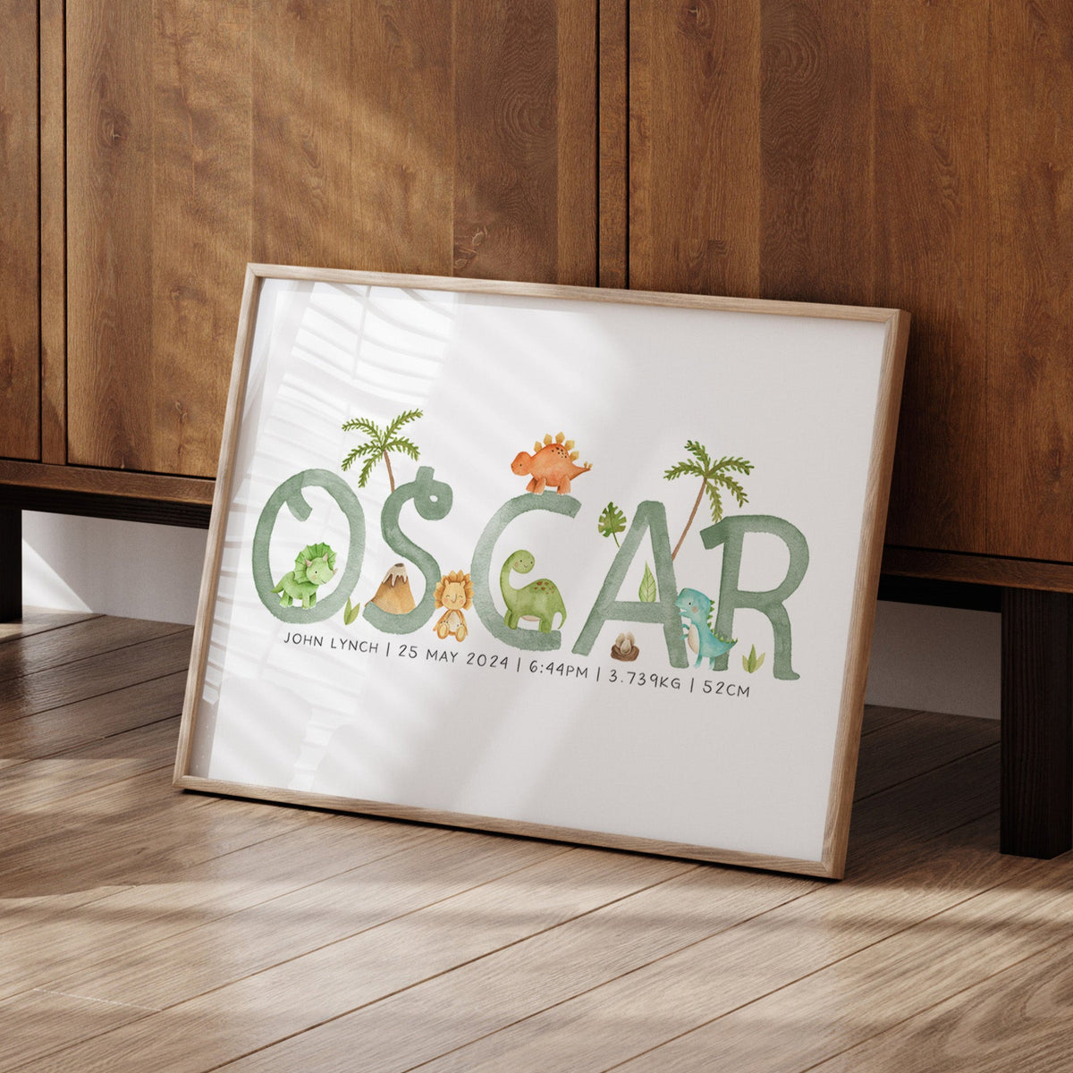 Unit price perPerfect for the dinosaur or Jurassic themed nursery, this personalised baby name print is available with the option to add your little one's birth details, it makes a perfect new baby gift or add the finishing touches to your own little boy's room.