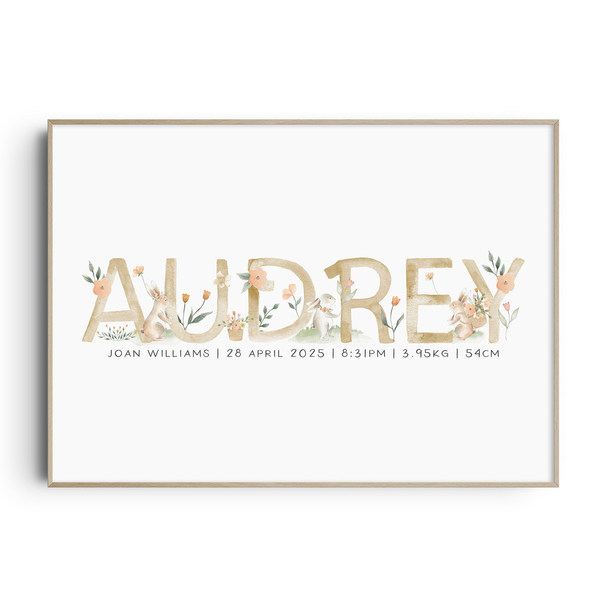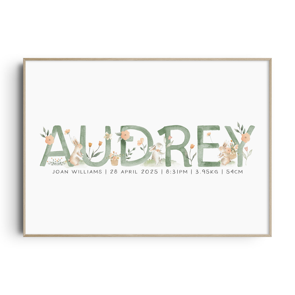 Unit price perThis personalised spring bunny name & birth details print is available in six different colour ways. It will make a perfect new baby gift or simply add the finishing touches to your own little girl's woodland nursery, bedroom or playroom decor