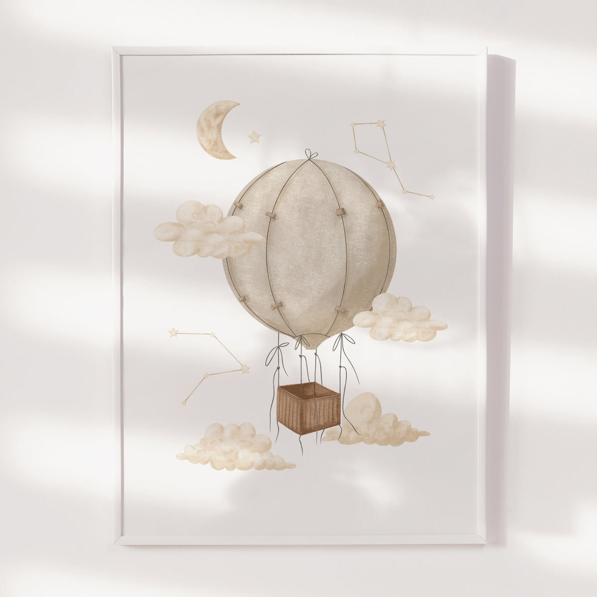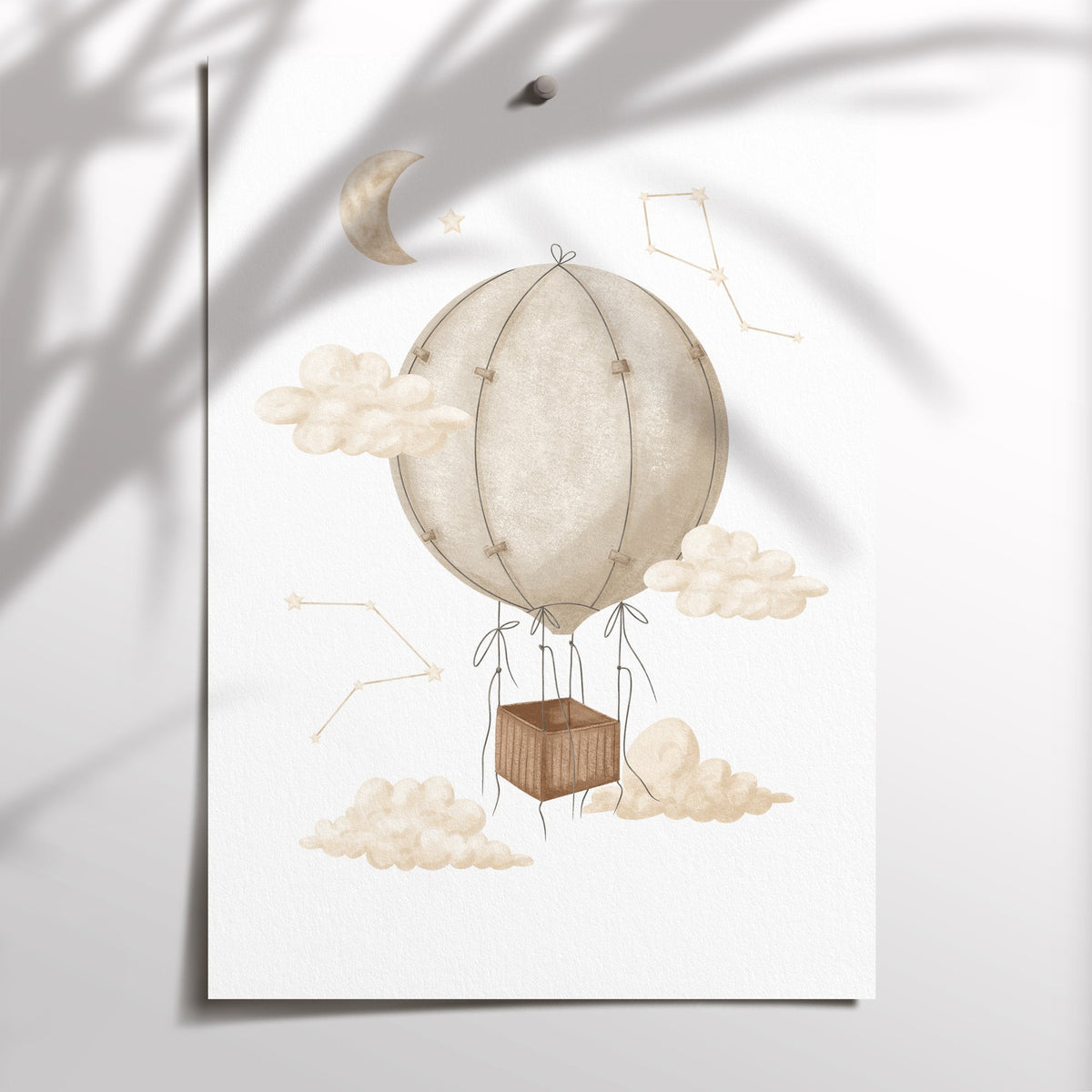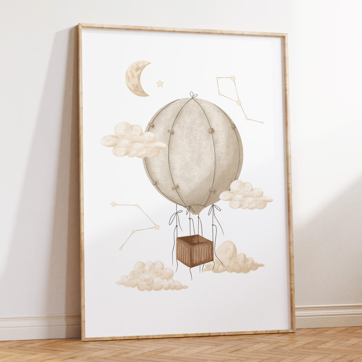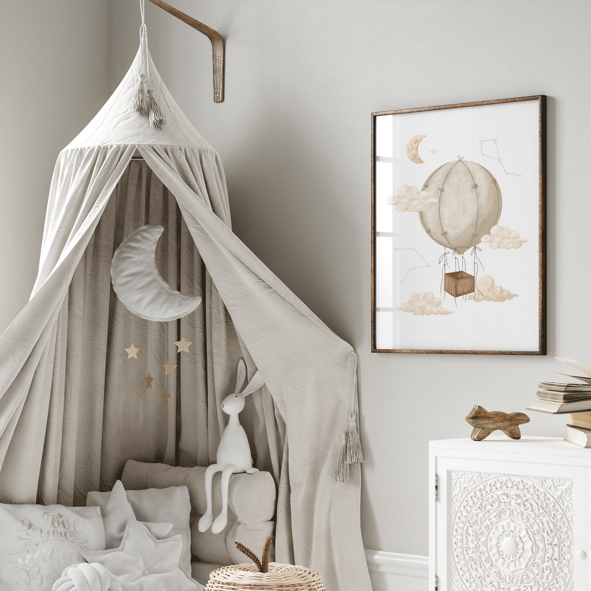Unit price perPerfect for the boho or transport themed nursery, bedroom or playroom decor is this vintage celestial hot air balloon print, use as a standalone piece or co-ordinate with other designs in this range.