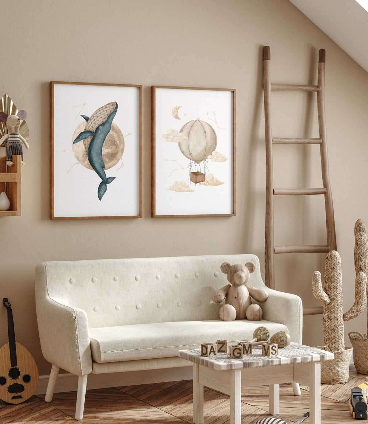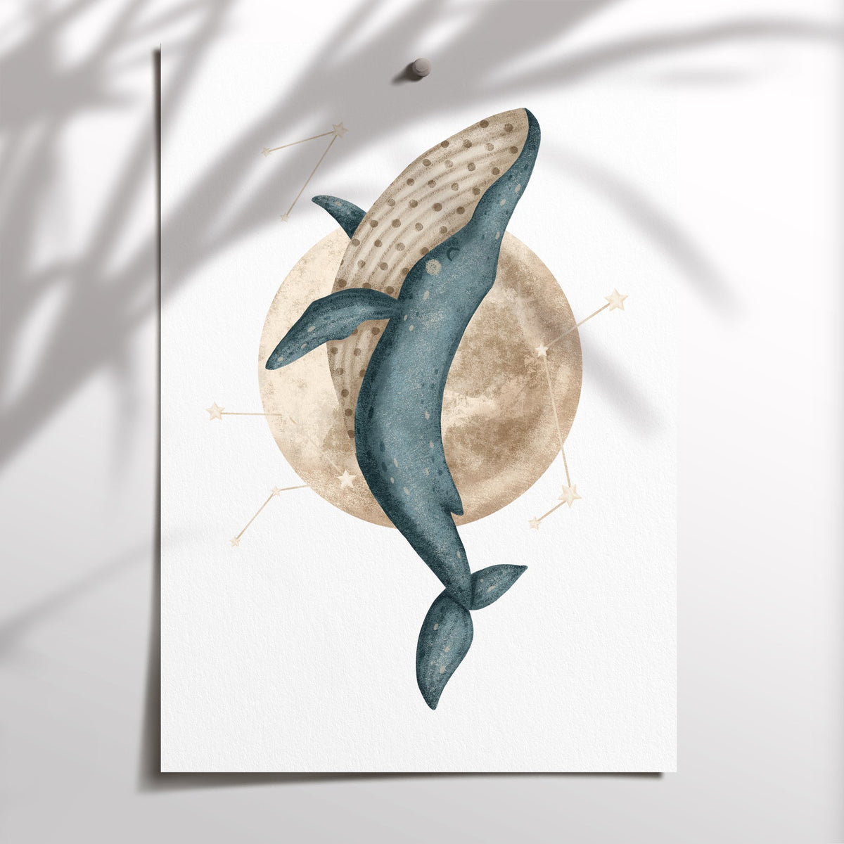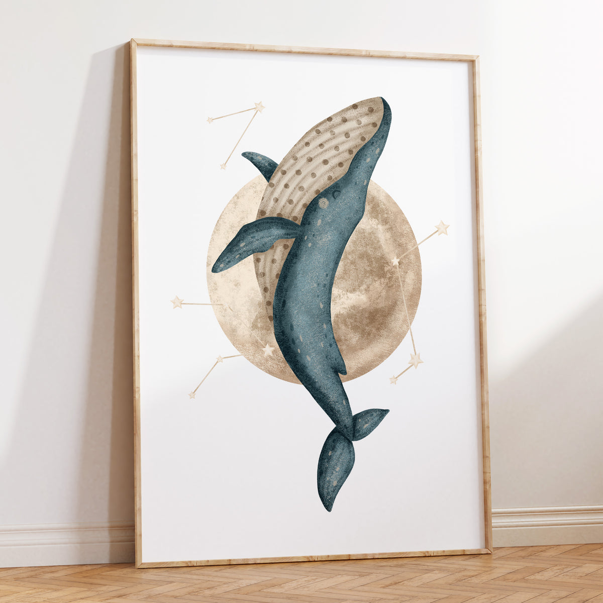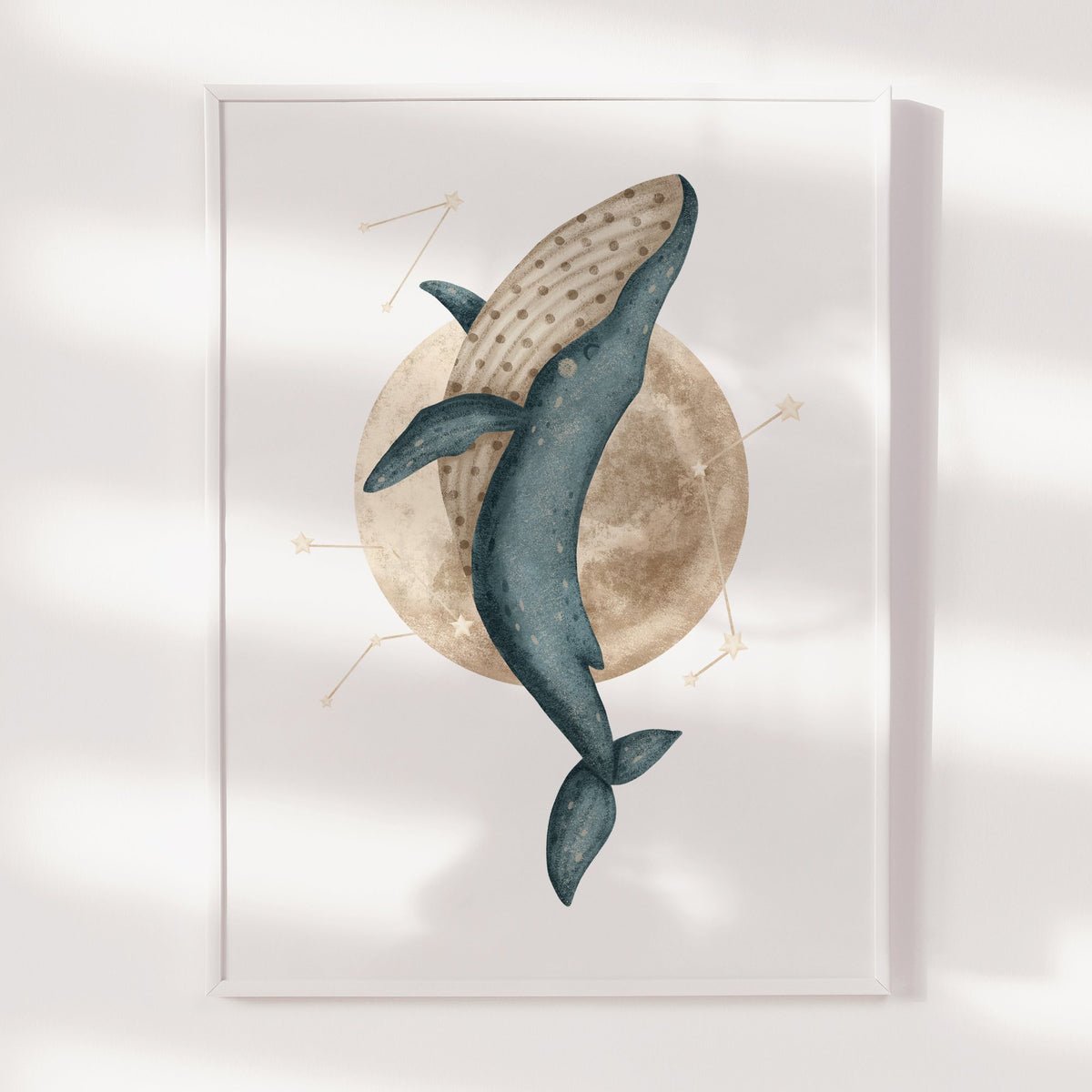 Unit price perPerfect for the ocean or under the sea themed nursery, bedroom or playroom decor is this watercolour boho whale print, use as a standalone piece or co-ordinate with other designs in this range.