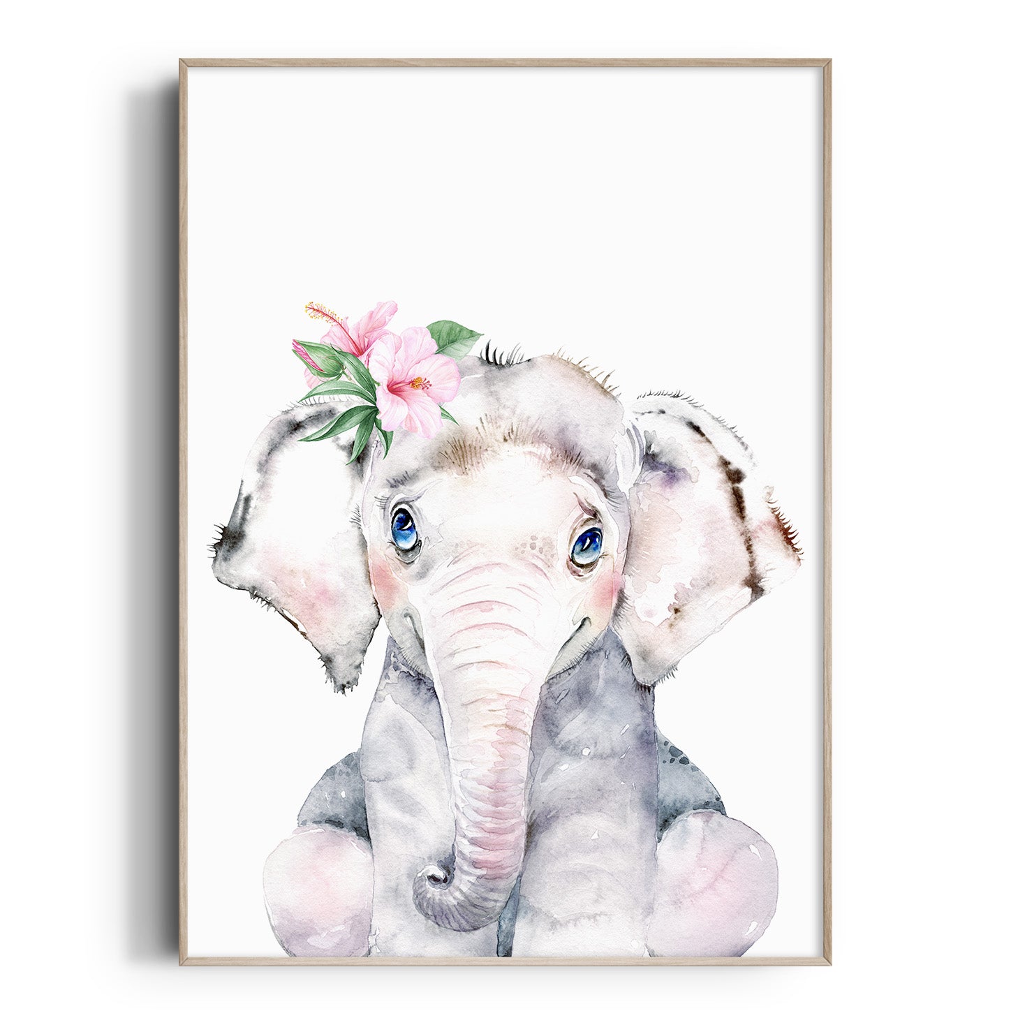 Unit price perBeautiful Floral Watercolour Baby Elephant, perfect for the Safari or Jungle Nursery or Bedroom décor.