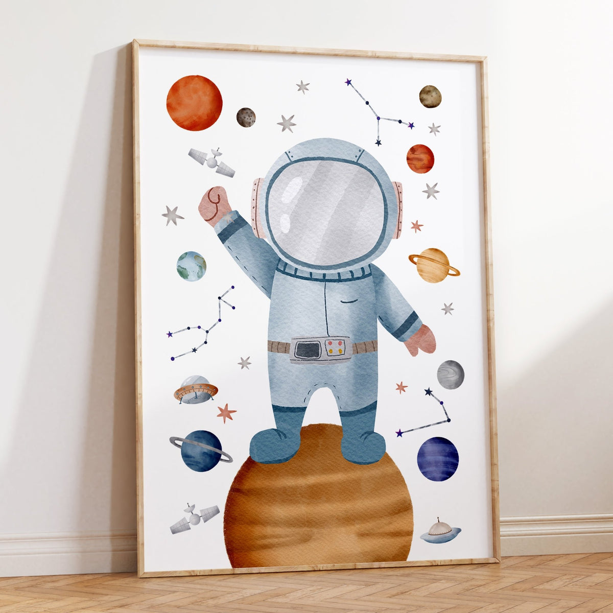 Unit price perPerfect for the space, planet or solar system themed nursery, bedroom or playroom, this astronaut print makes a perfect new baby boy gift, or a great way to add the finishing touches to your own child's nursery or bedroom space.