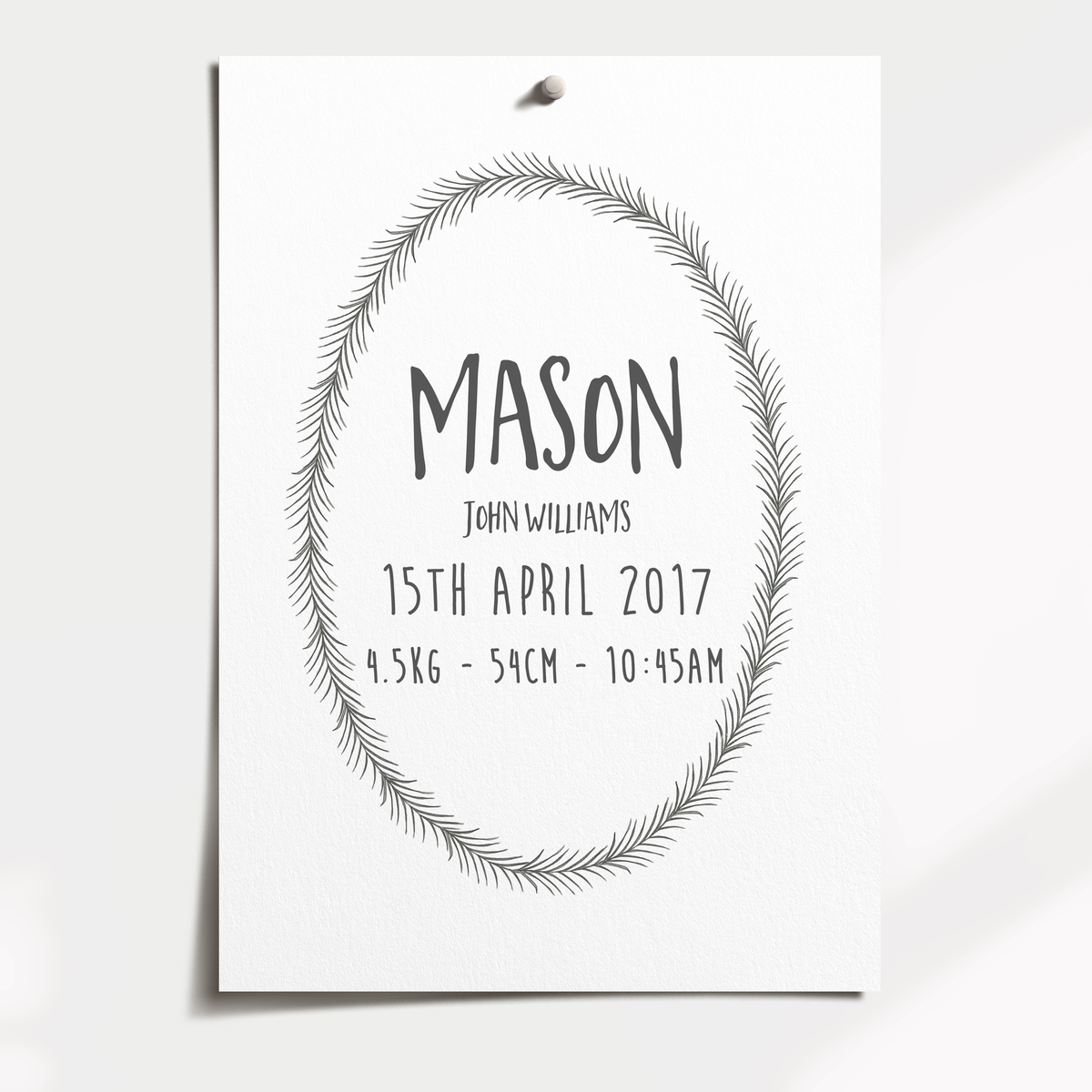 Unit price perA Boho Feather Woodland Birth Announcement print, designed to compliment our co-ordinating Woodland Fox & Deer prints.