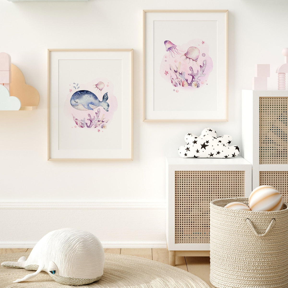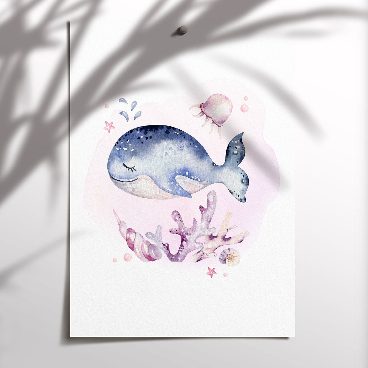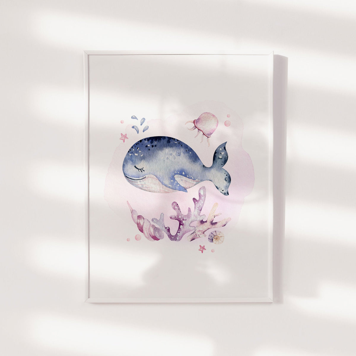 Unit price perPerfect for the ocean themed nursery, bedroom or playroom decor is this watercolour baby whale wall art print, use as a standalone piece or co-ordinate with our other under the sea prints.