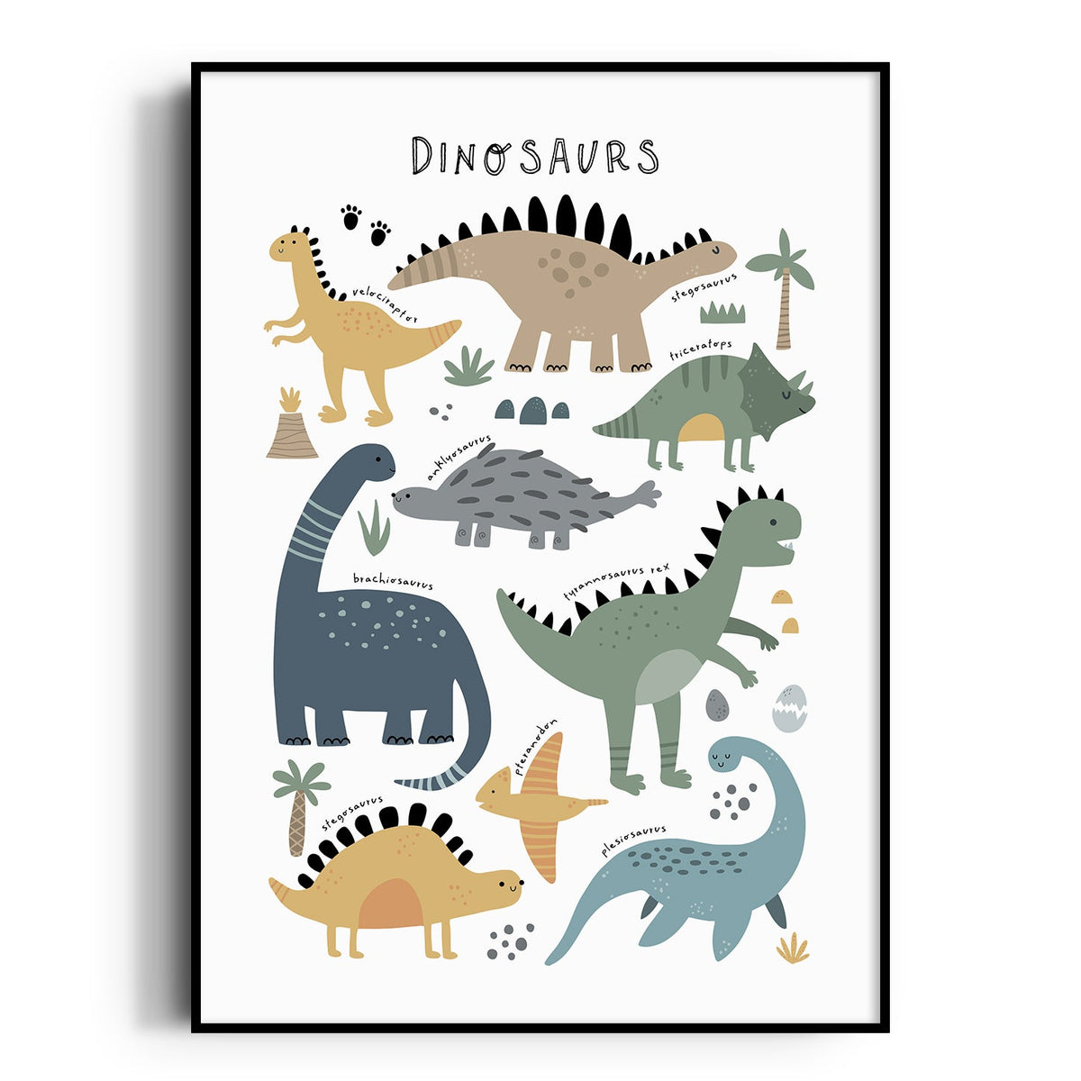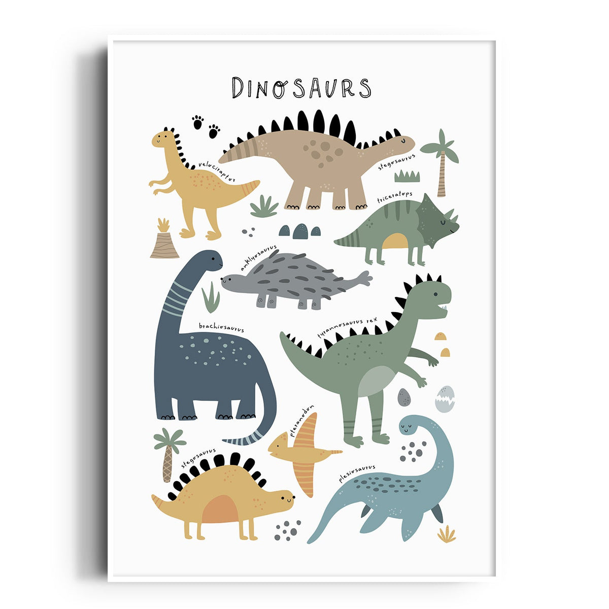 Prepare to be dino-mite! Our Dinosaur Chart wall art print is perfect for bringing any room to life. Featuring a vivid array of dinosaurs, it's sure to impress all the little dino-experts out there. Watch boys' imaginations run wild and roar with excitement!