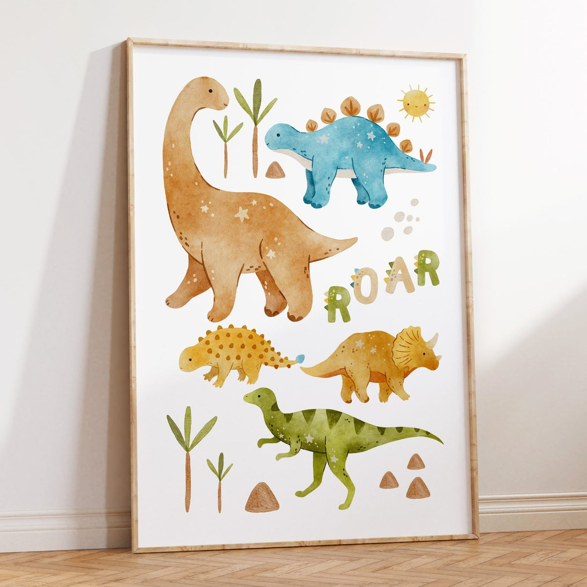 Prepare to be dino-mite! Our Dinosaur Chart wall art print is perfect for bringing any room to life. Featuring a vivid array of dinosaurs, it's sure to impress all the little dino-experts out there. Watch boys' imaginations run wild and roar with excitement!