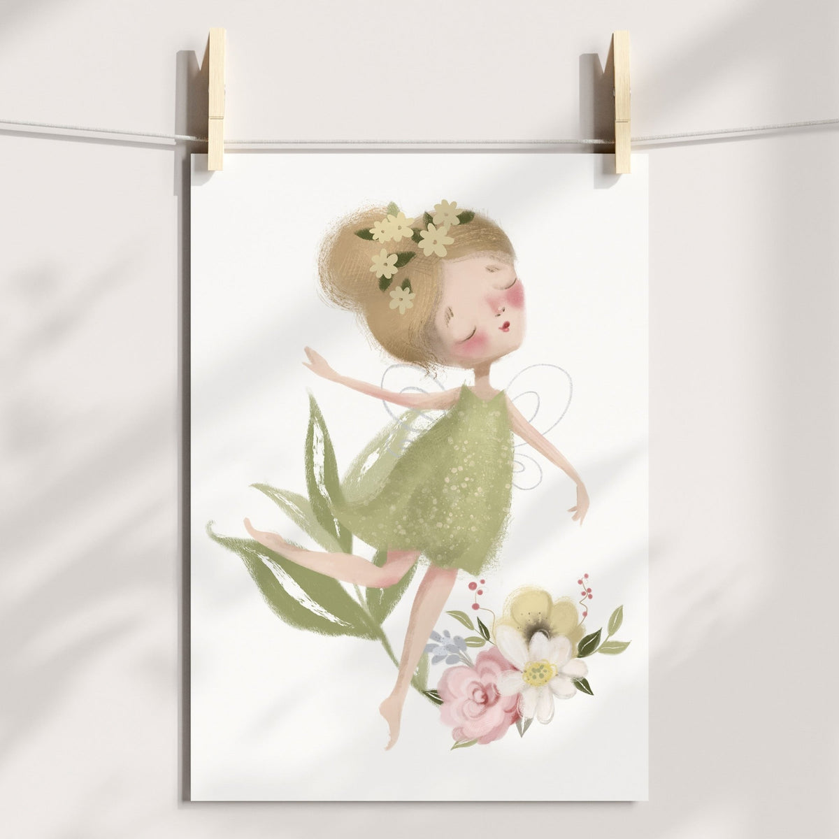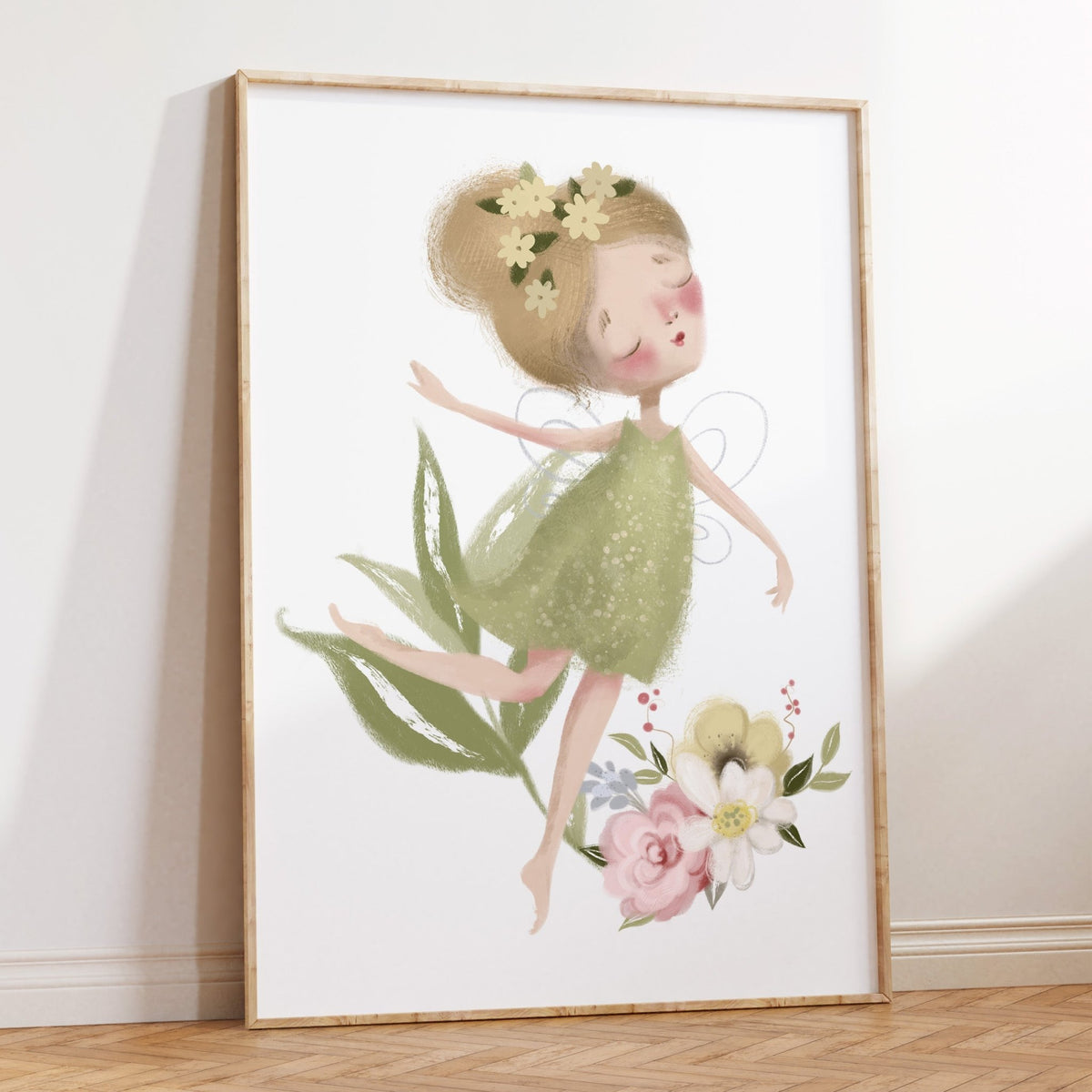 Make a statement with this whimsical fairy wall art print, it can be paired with our other co-ordinating  prints and is perfect for any little girl's fairy themed nursery, bedroom or playroom decor.