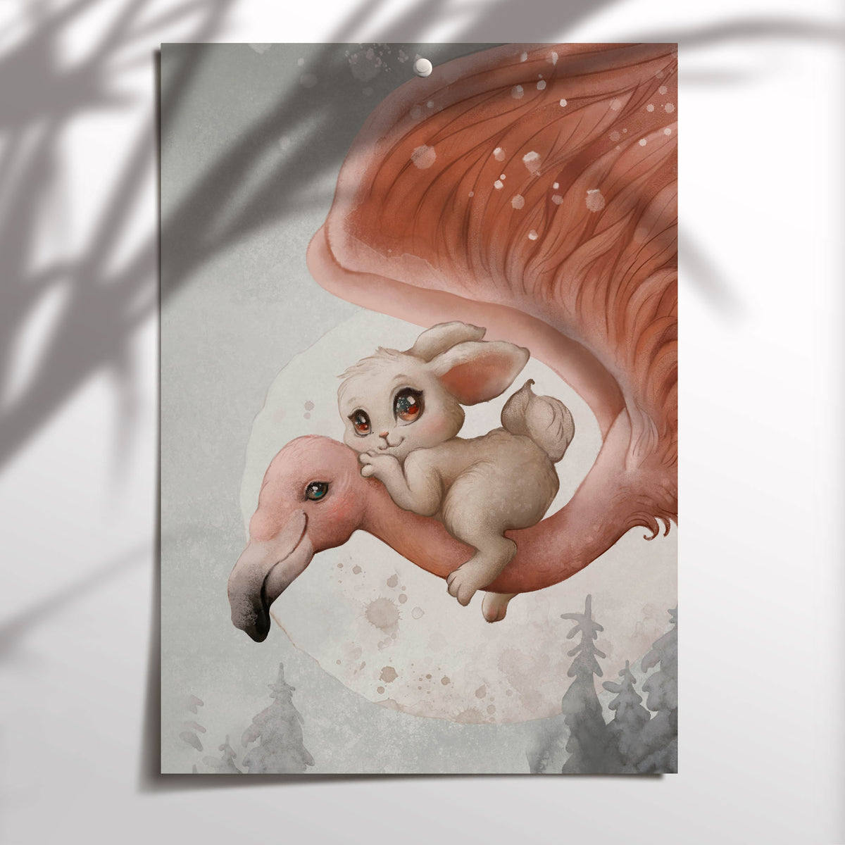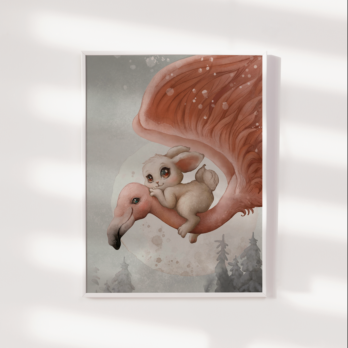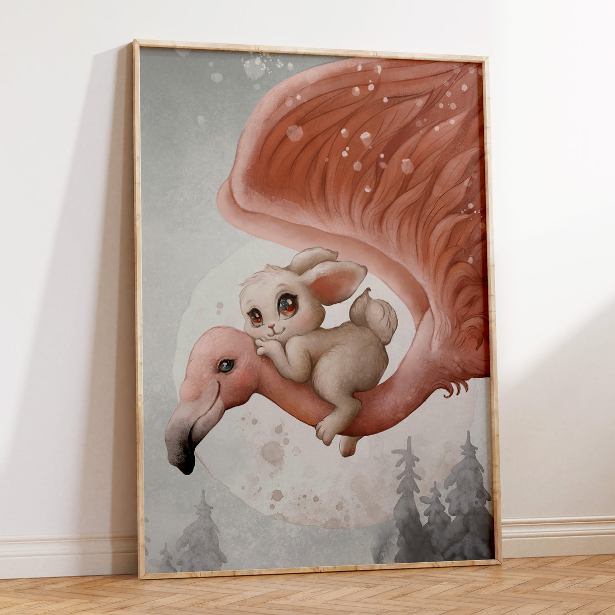Unit price perA beautiful addition to your child's nursery or bedroom is this watercolour, vintage style, flamingo and bunny print. This magical wall art will add the finishing touches to any little girls special space. Use as a stand alone feature or mix and match with our other co-ordinating art prints.
