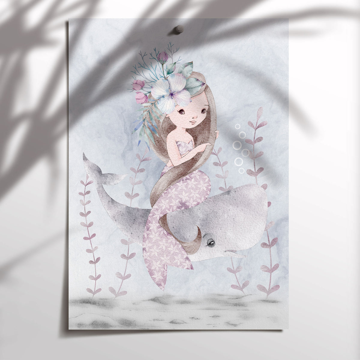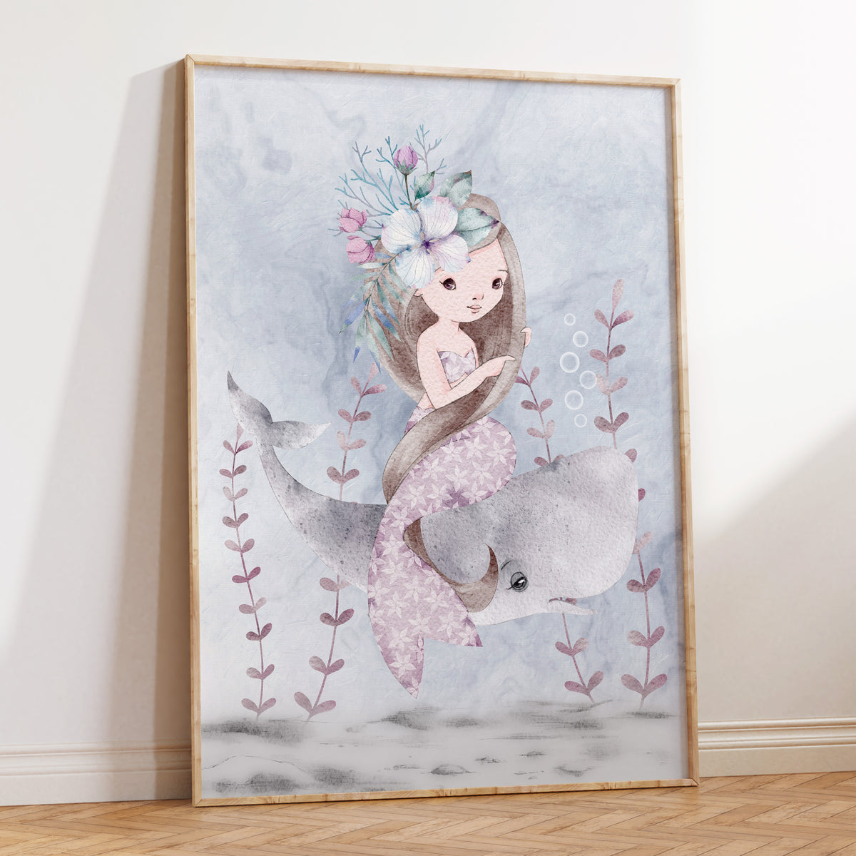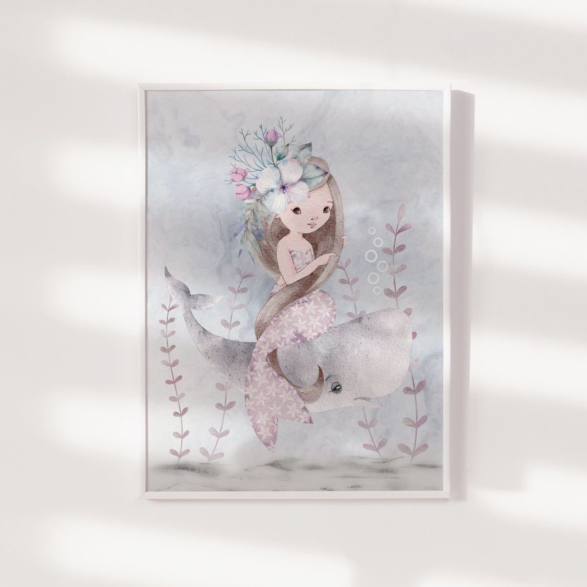 Unit price perPerfect for the mermaid, ocean or sea themed nursery, bedroom or playroom decor is this watercolour mermaid wall art print, use as a standalone piece or co-ordinate with our other co-ordinating prints.