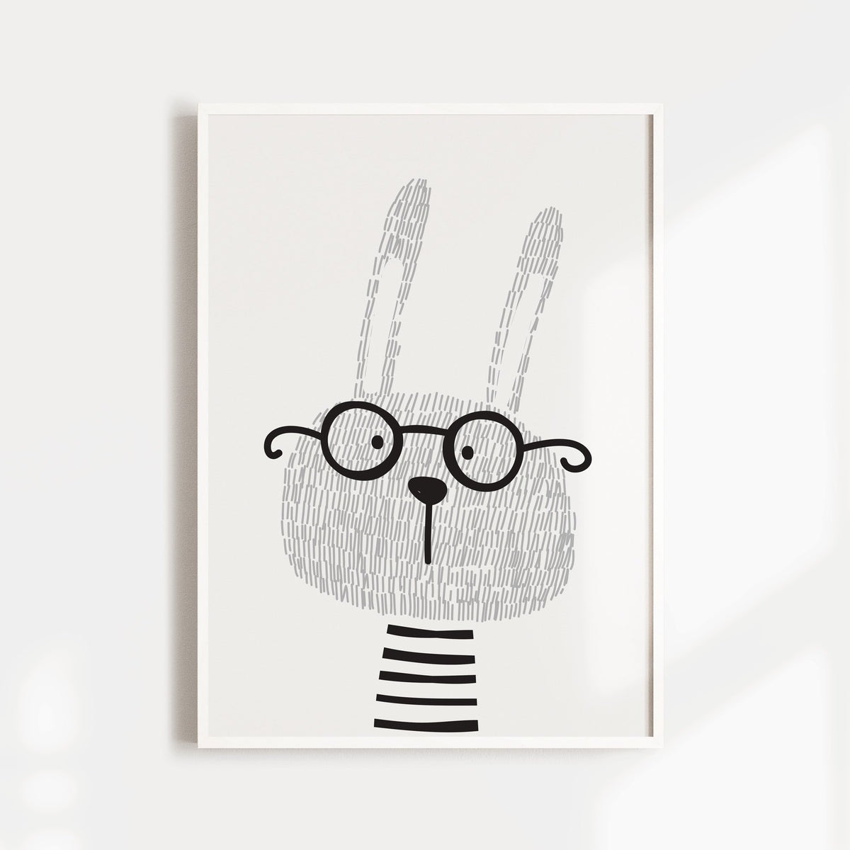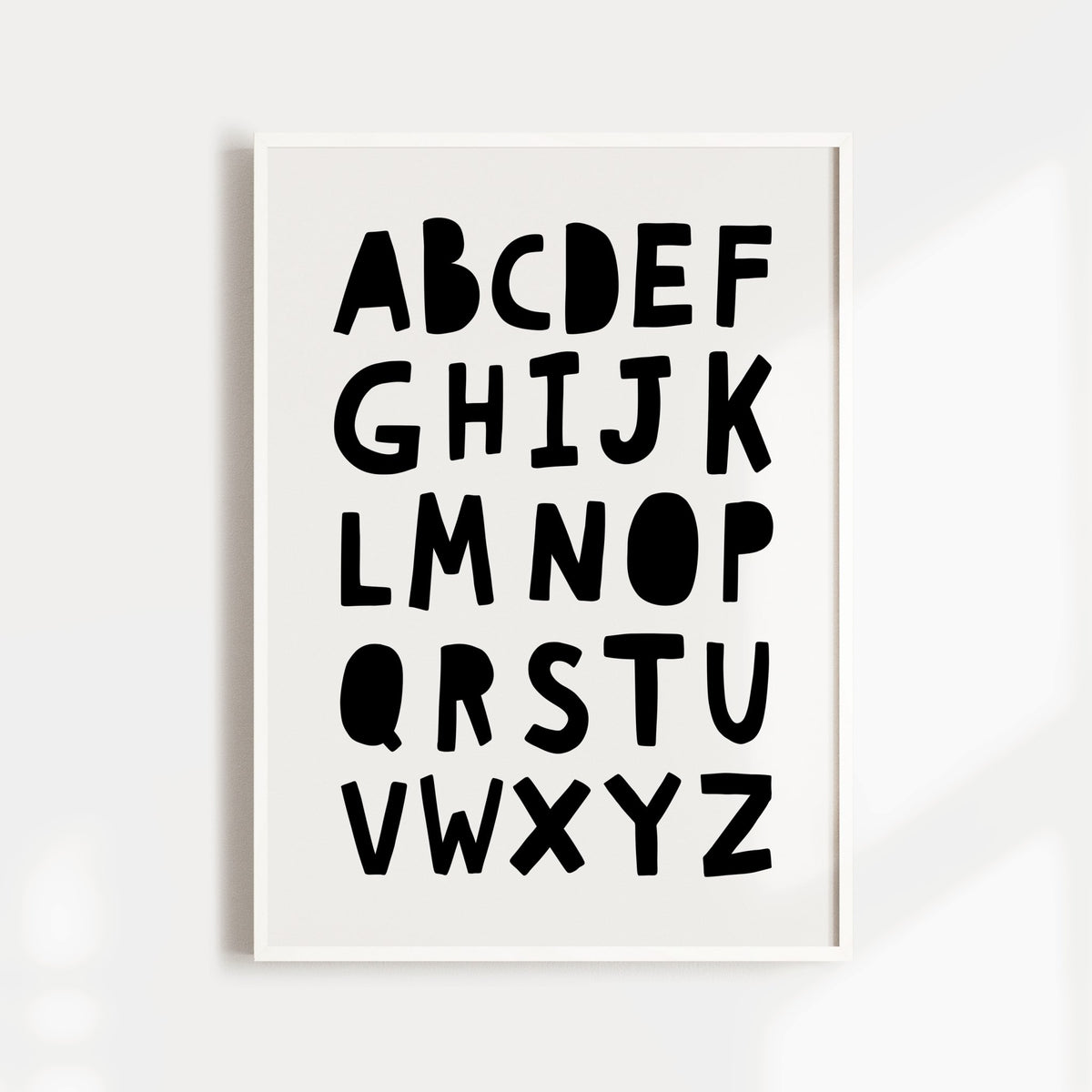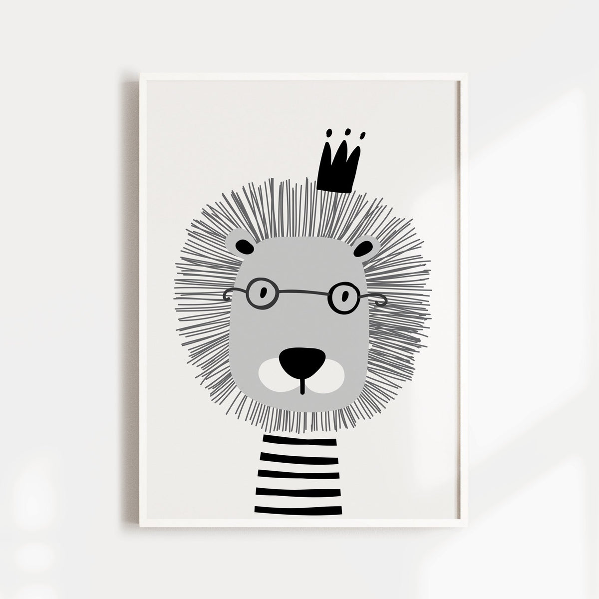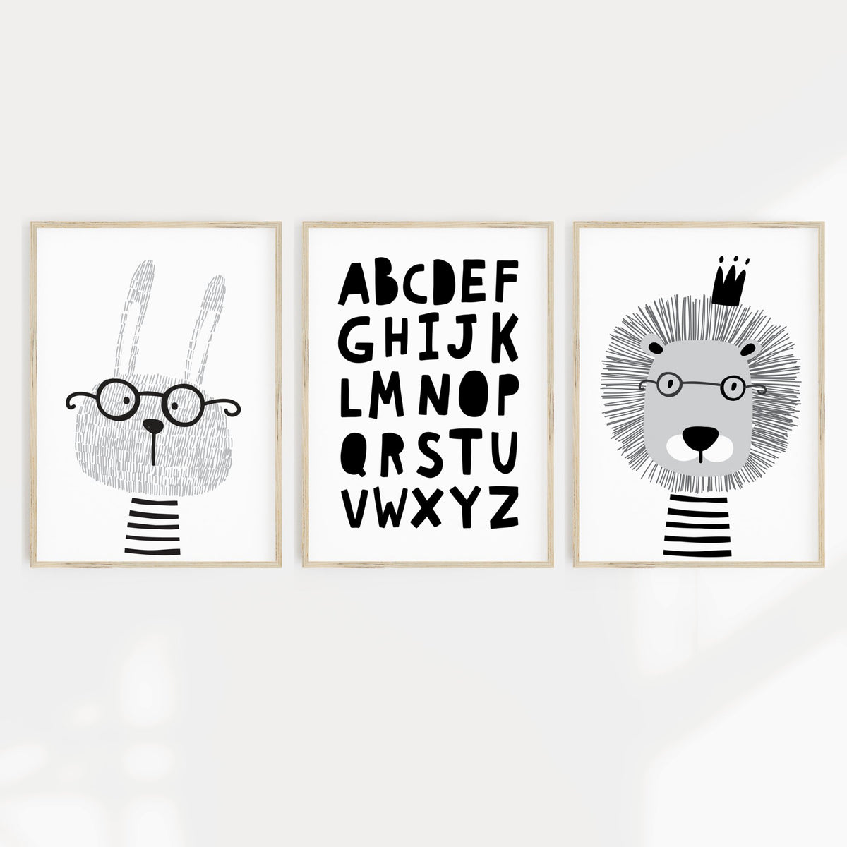 A  set of three scandi, inspired bedroom wall art prints just for the boys. Featuring a bunny, lion and alphabet print.