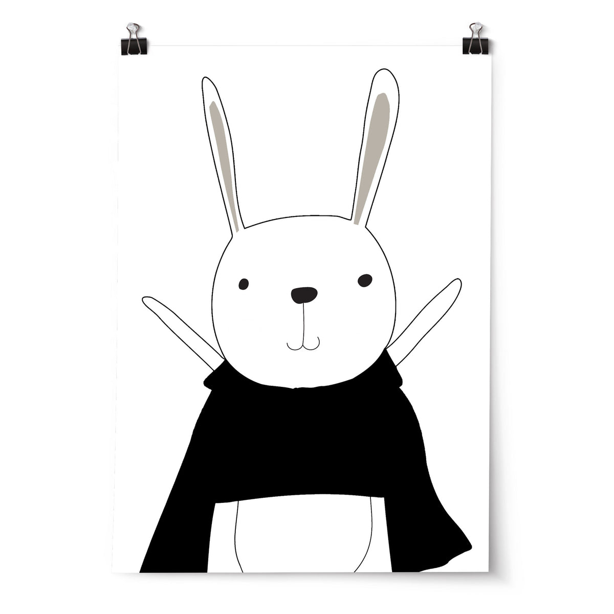 Unit price perA monochrome Superhero Bunny wall art print perfect for the superhero, scandi or monochrome nursery, bedroom or playroom.