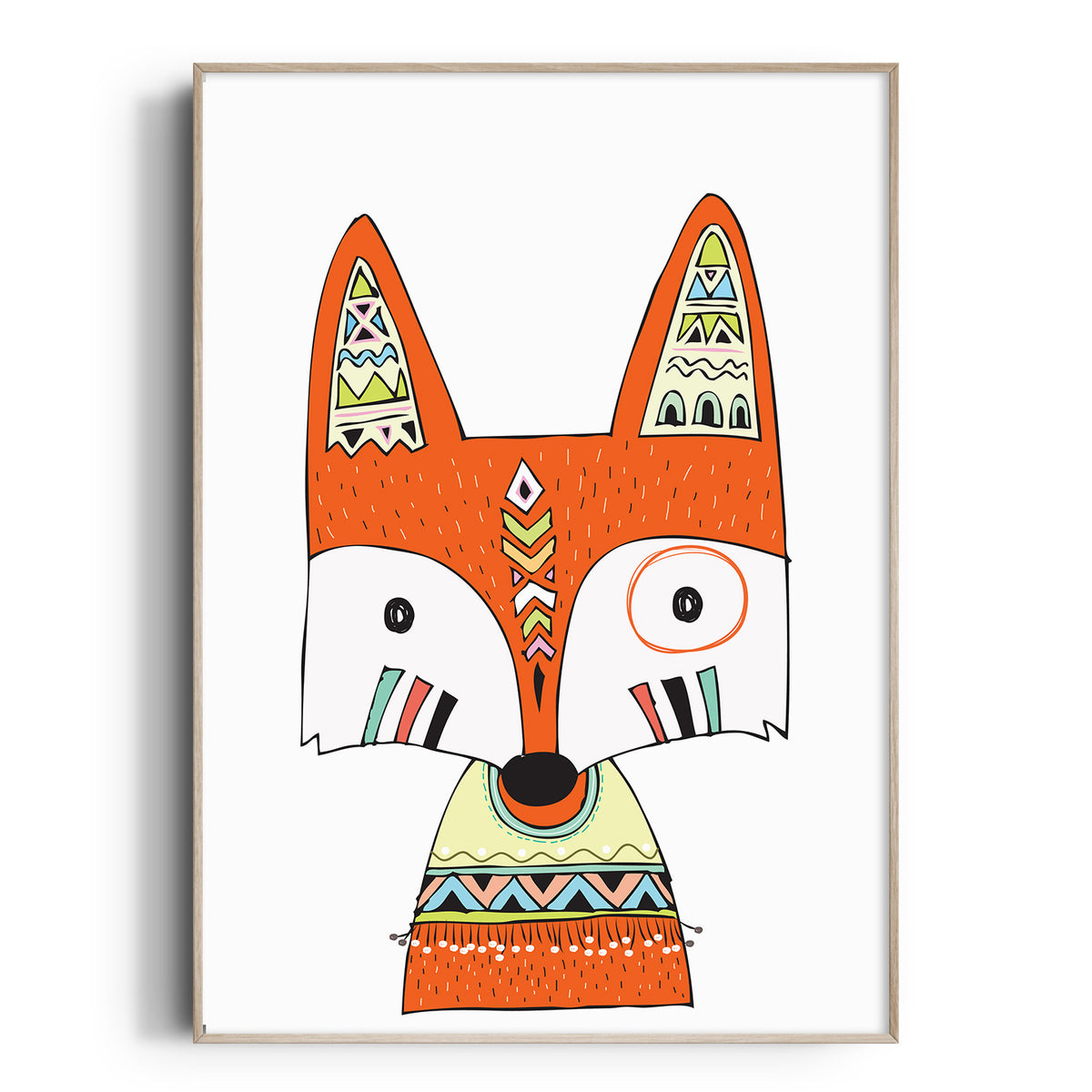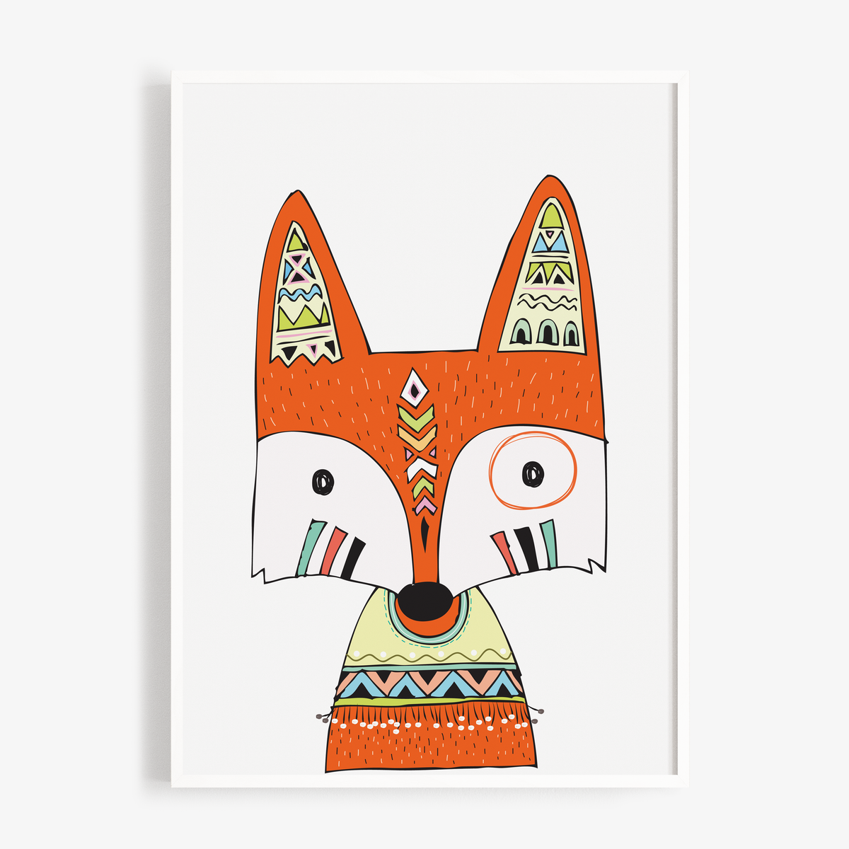 Unit price perThis fox nursery wall art print is perfect for the woodland, tribal or animal themed bedroom, nursery or playroom decor. Use it as a stand alone feature or combine with other co-ordinating animal posters.
