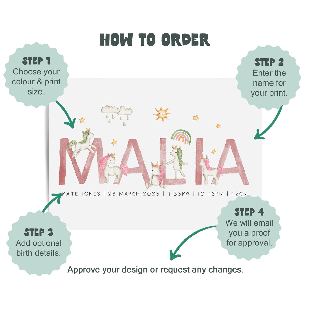 Unicorn Name & Birth Print