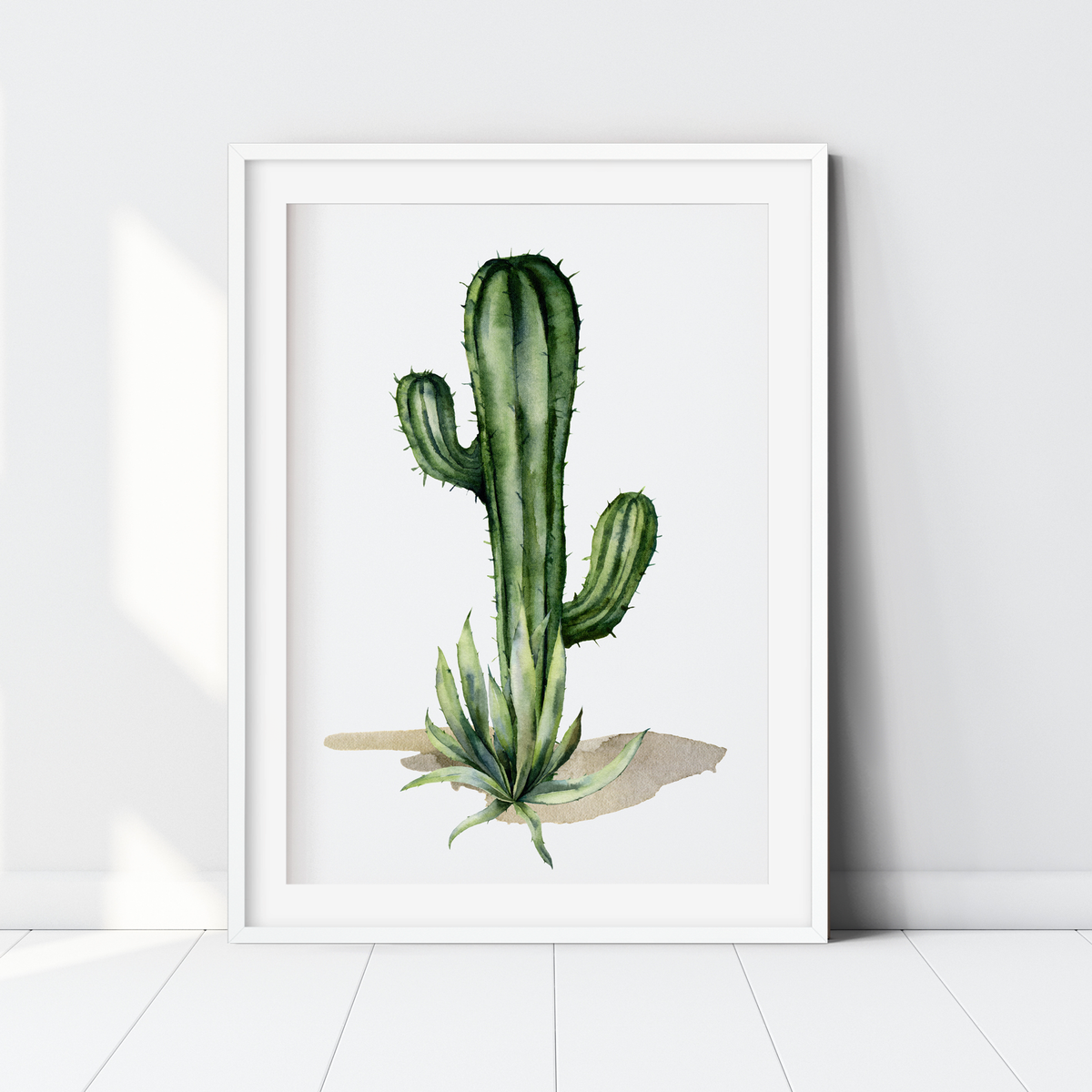 A set of three watercolour prints, featuring two llamas and desert inspired cacti, perfect for the modern southwestern nursery or bedroom.